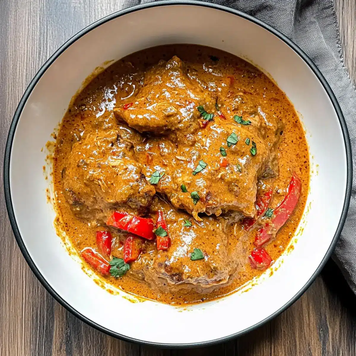 Als ich das erste Mal den Duft von Afrikanischem Hähnchen-Erdnuss-Eintopf in meiner Küche erlebte, wusste ich, dass ich in eine ganz neue Geschmackswelt eintauchen würde. Die Kombination aus cremiger Erdnussbutter, zartem Hähnchen und aromatischen Gewürzen sorgt für ein unvergessliches Genusserlebnis. Dieses herzliche Gericht ist nicht nur ein echter Hingucker, es ist auch perfekt für eine einfache und schnelle Zubereitung – ideal für those, die sich nach einem ausgiebigen Essen sehnen, aber keine Stunden in der Küche verbringen möchten. Mit der Möglichkeit, die Hähnchenbrust gegen andere Proteinquellen wie Rindfleisch oder Fisch auszutauschen, passt dieser Eintopf zu jedem Geschmack und ist zudem nahrhaft und sättigend. Klingt das nicht nach einem perfekten Rezept, um in die Welt der westafrikanischen Küche einzutauchen?