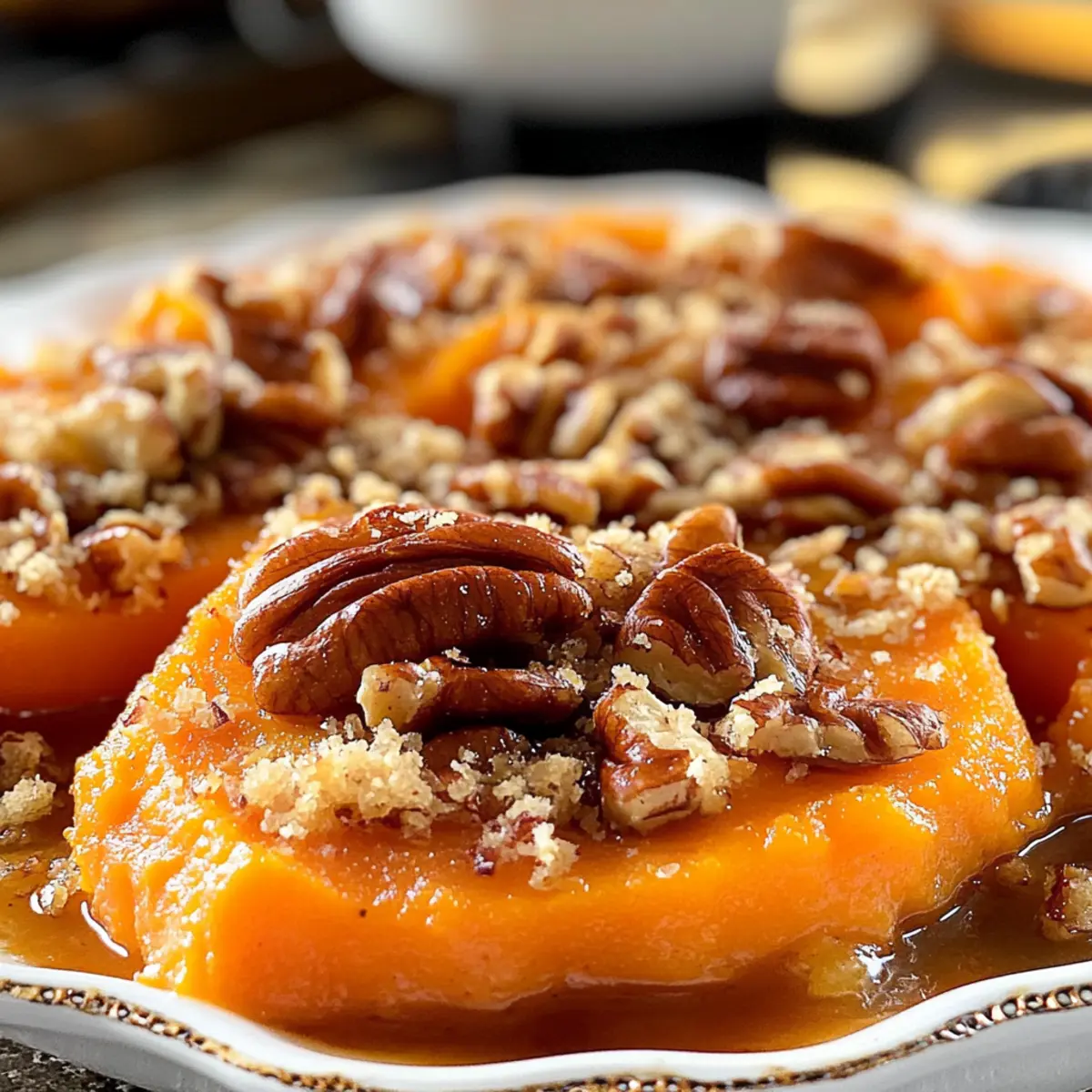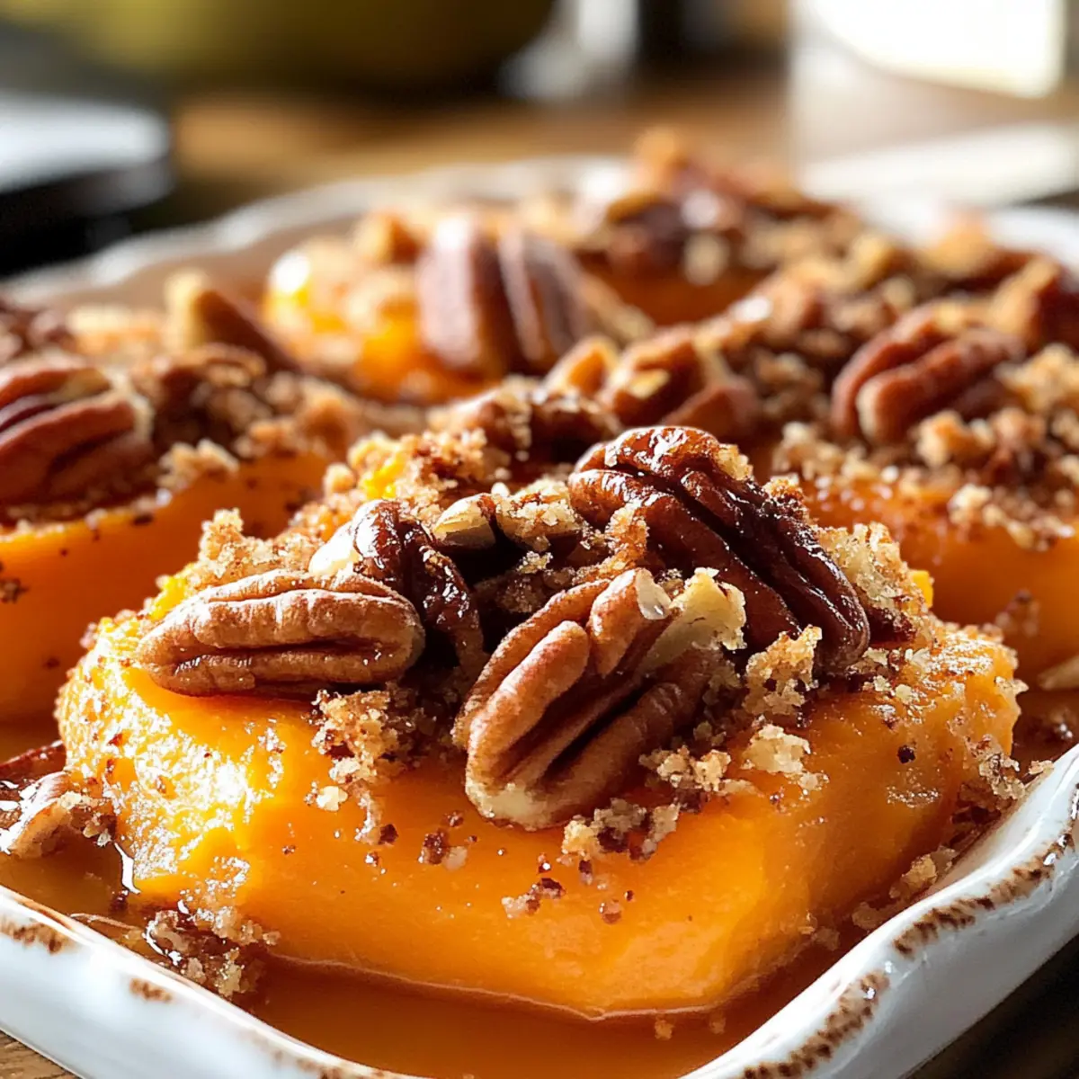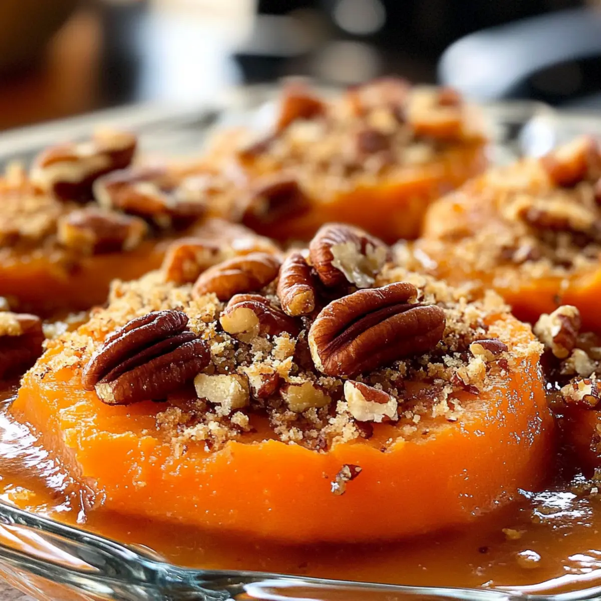 Harmonischer Geschmack: Die süßen, weichen Süßkartoffeln harmonieren perfekt mit dem nussigen Aroma der Pekannüsse und dem süßen Ahornsirup.