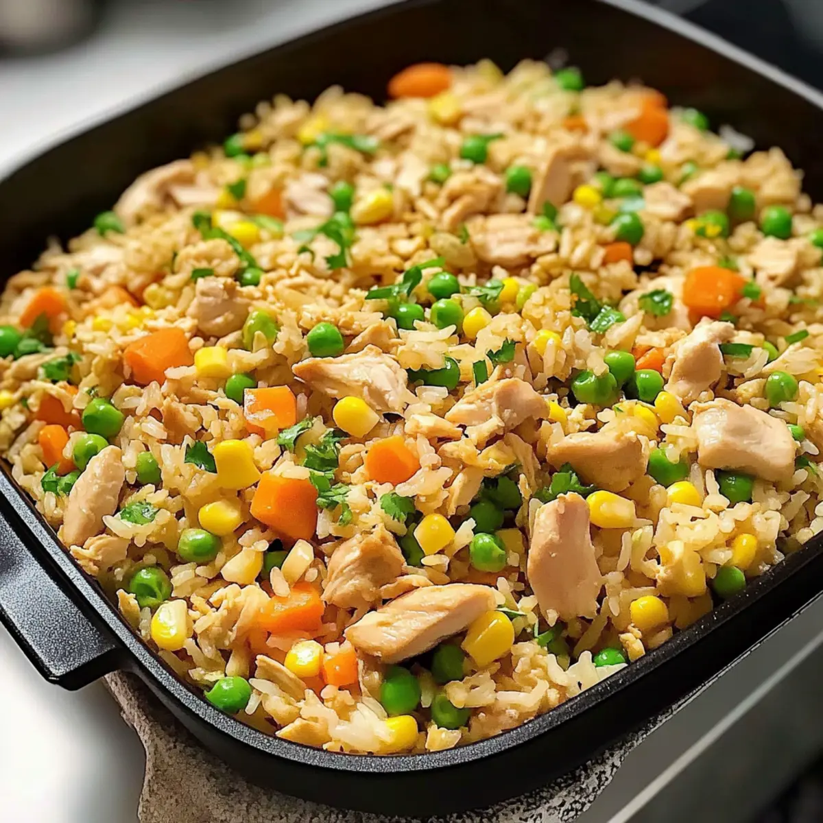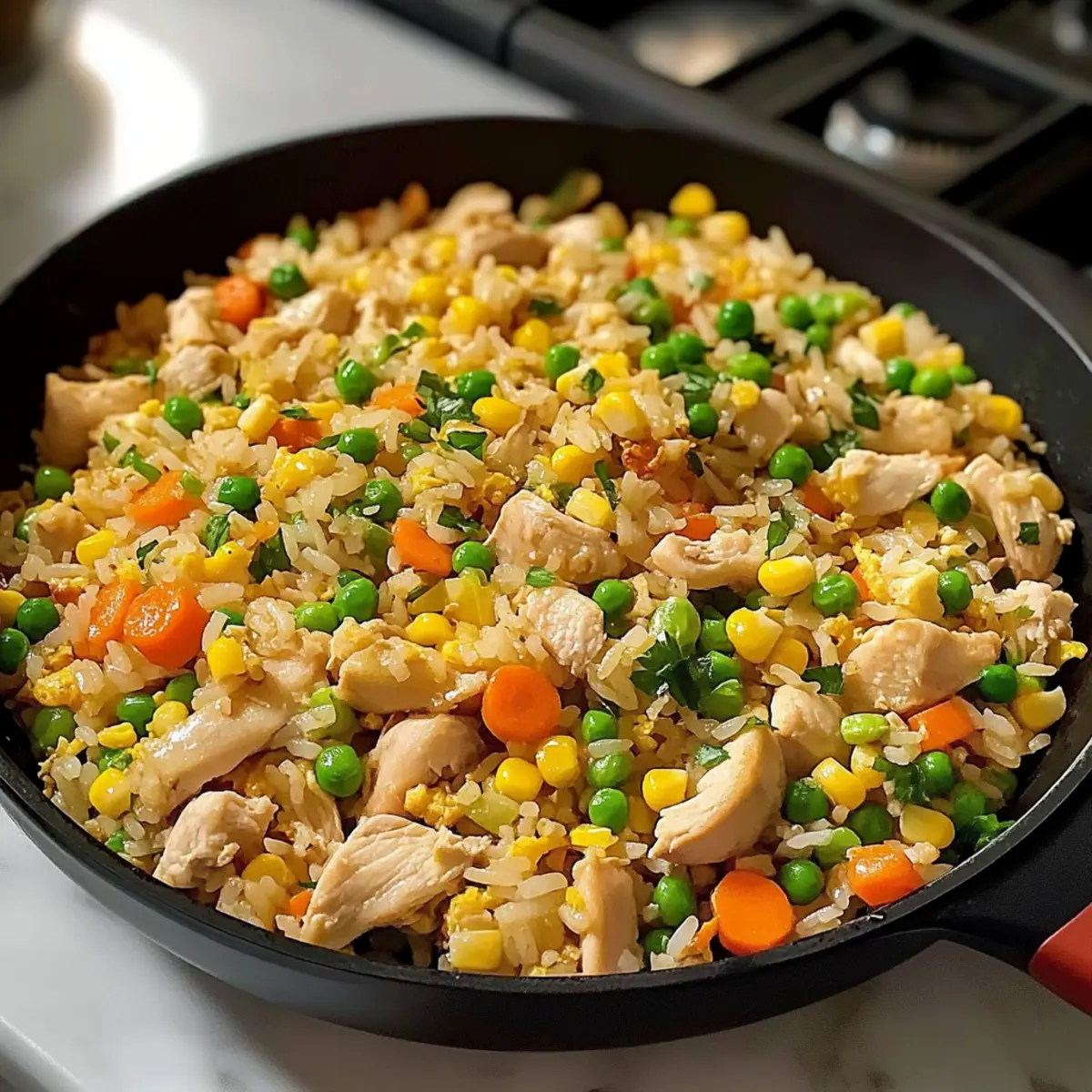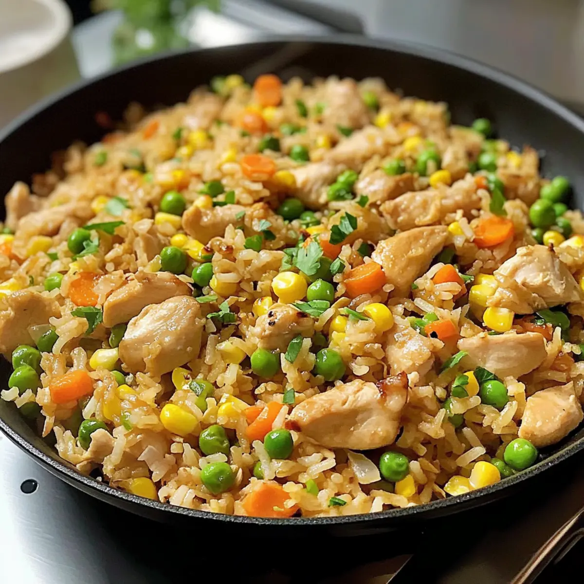 Asiatischer Hähnchen gebratener Reis in 20 Minuten