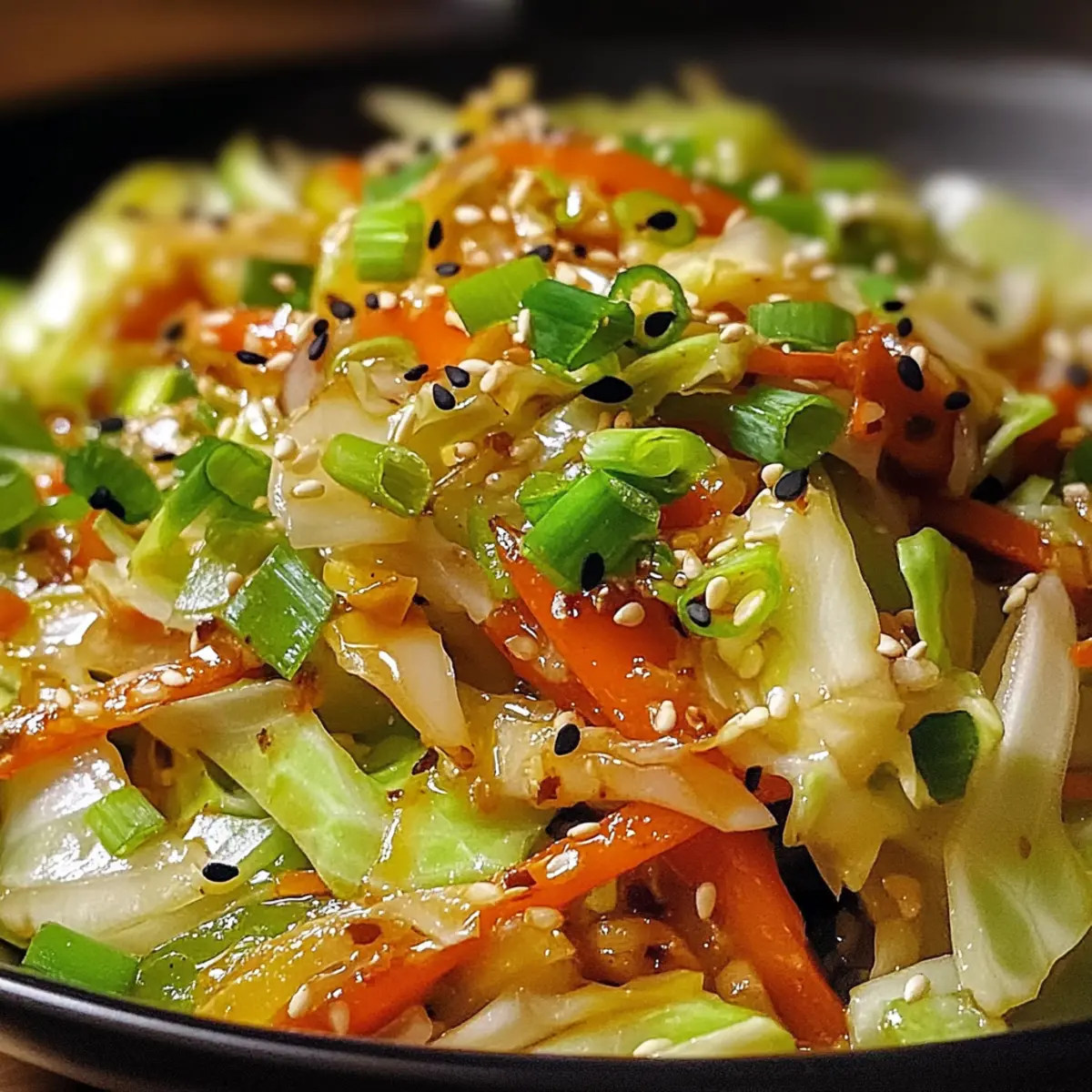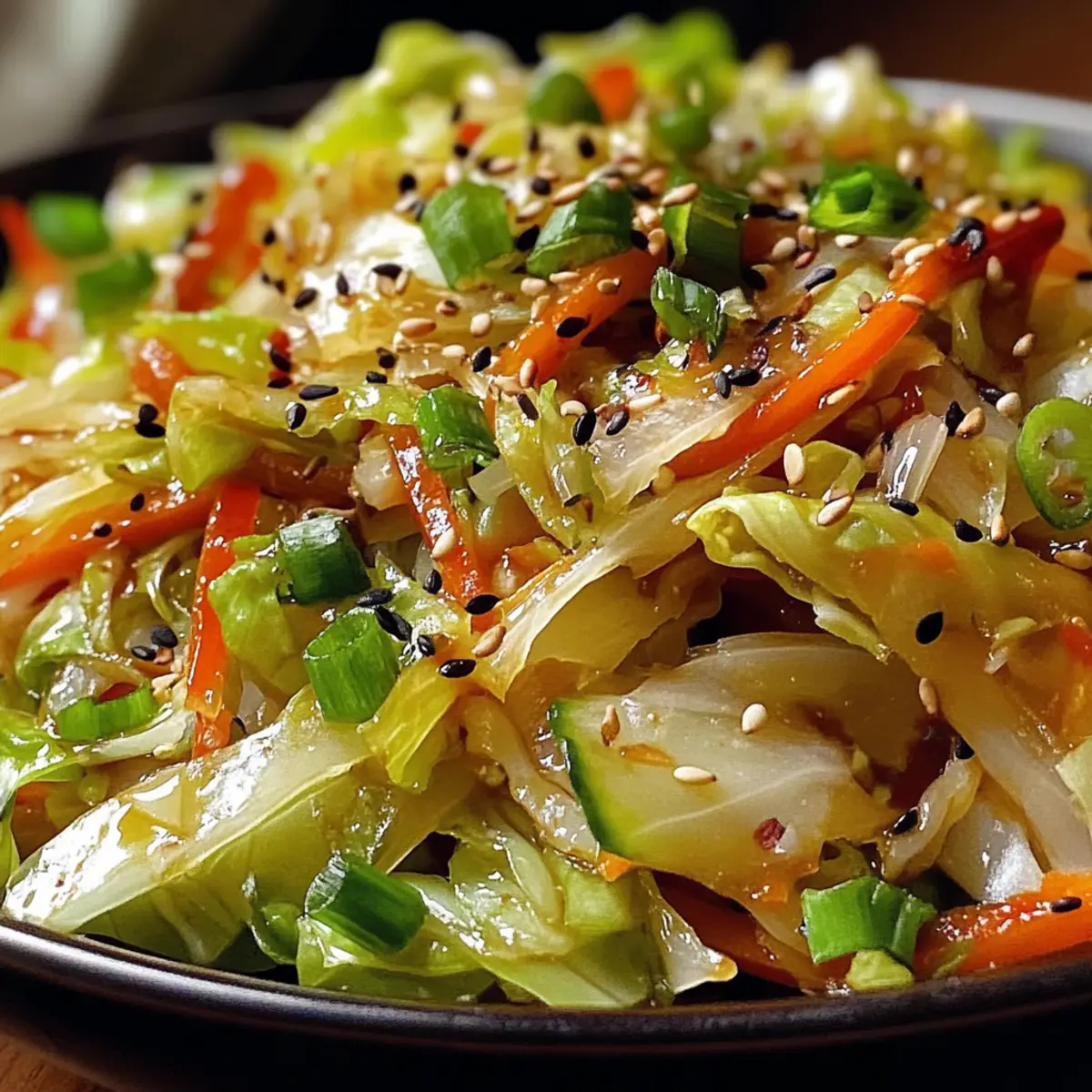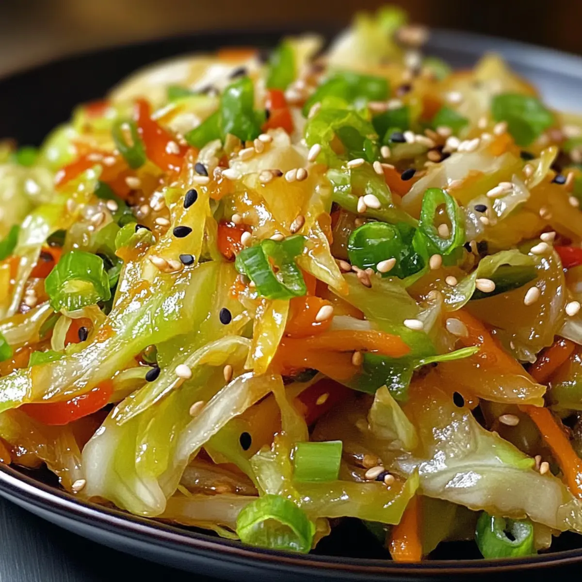 Nehme die Pfanne vom Herd und rühre die gehackten Frühlingszwiebeln unter das Gemüse. Serviere die Asiatische Kohlgemüse Pfanne sofort heiß auf Tellern und garniere sie nach Belieben mit Sesamkörnern oder gehackten Erdnüssen für einen zusätzlichen Crunch.