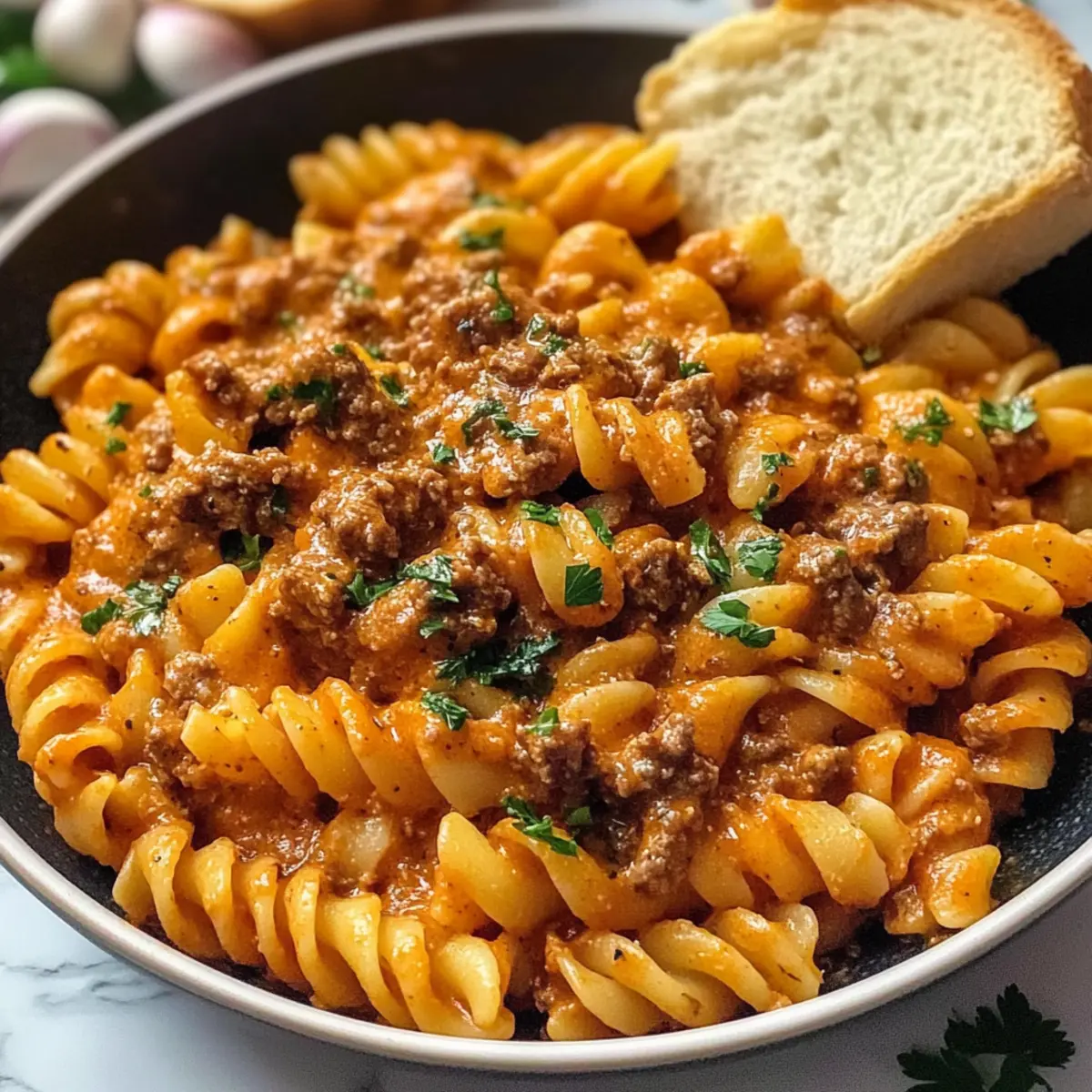 Die befriedigende Rindfleisch-Pasta bringt all diese köstlichen Zutaten zusammen und sorgt für ein unvergleichliches Geschmackserlebnis. Bon Appétit!