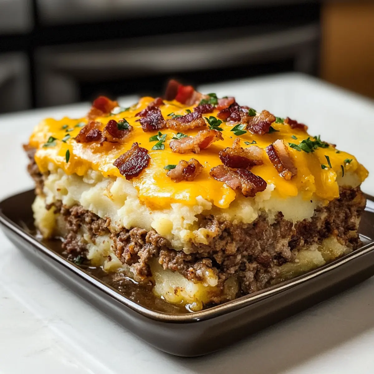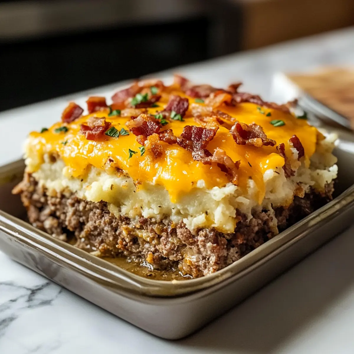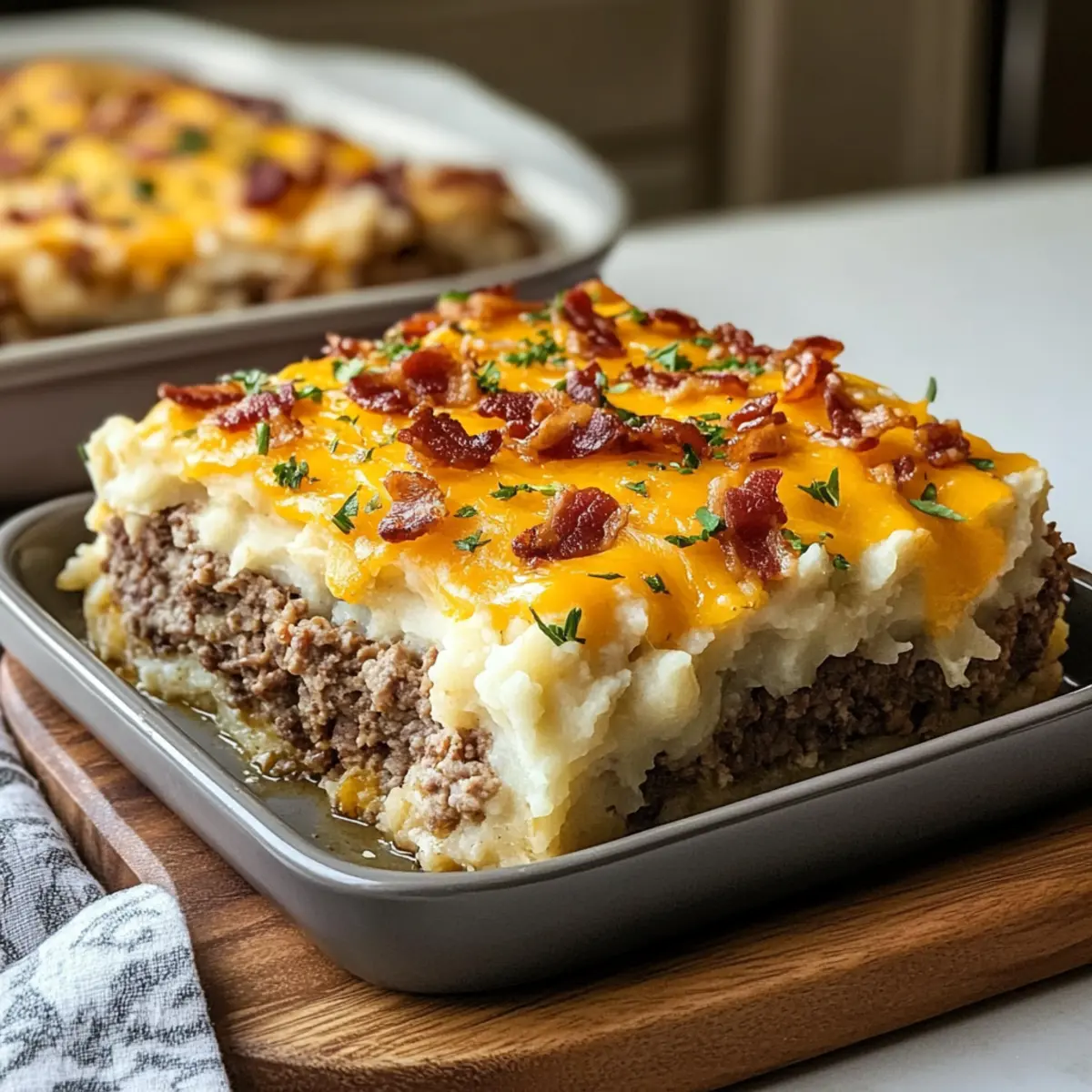 Beladener Kartoffel- und Hackbraten-Auflauf für die Familie