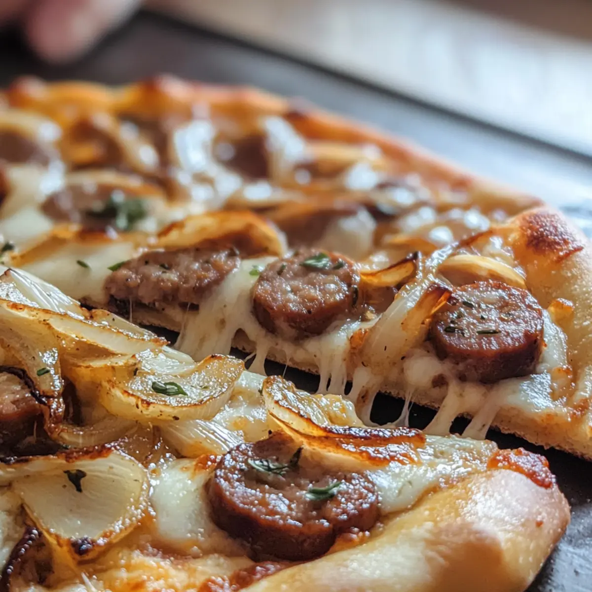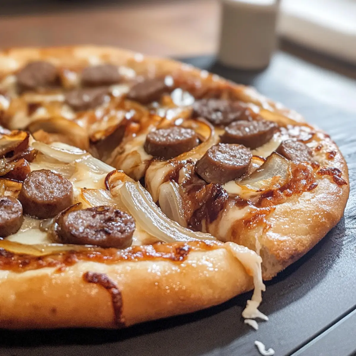 Entdeckt die herzhaften Aromen dieser Bier-Bratwurst und karamellisierten Zwiebel Pizza und genießt ein Gericht, das euch und eure Freunde begeistern wird!