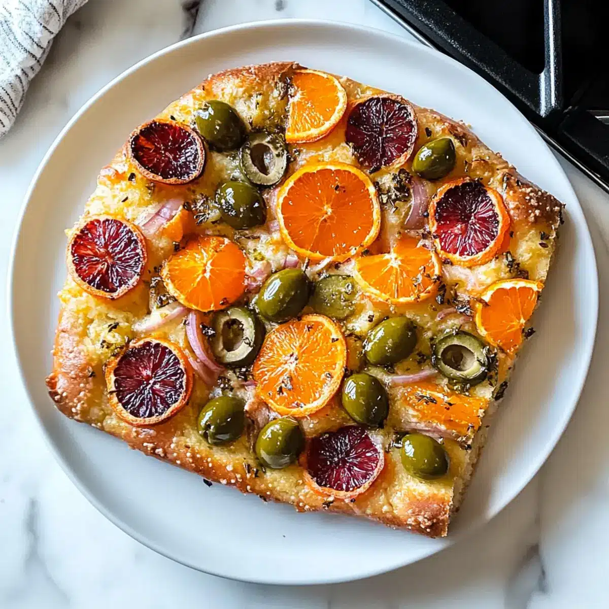 Einzigartige Aromen: Die Kombination aus Blutorangen, Schalotten und Oliven verleiht dieser Focaccia einen unverwechselbaren Geschmack, der leicht und doch herzhaft ist.