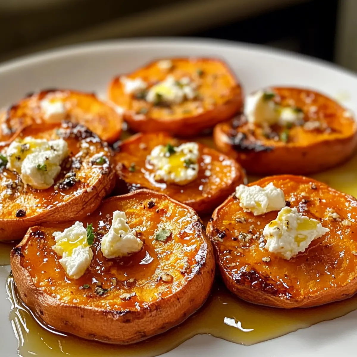 Geröstete Süßkartoffelrunden mit Honig und Feta