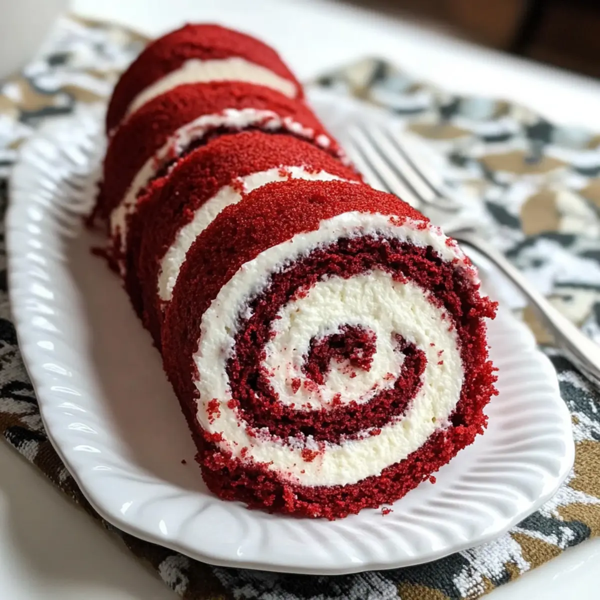 Roter Samtkuchenrolle mit cremiger Füllung