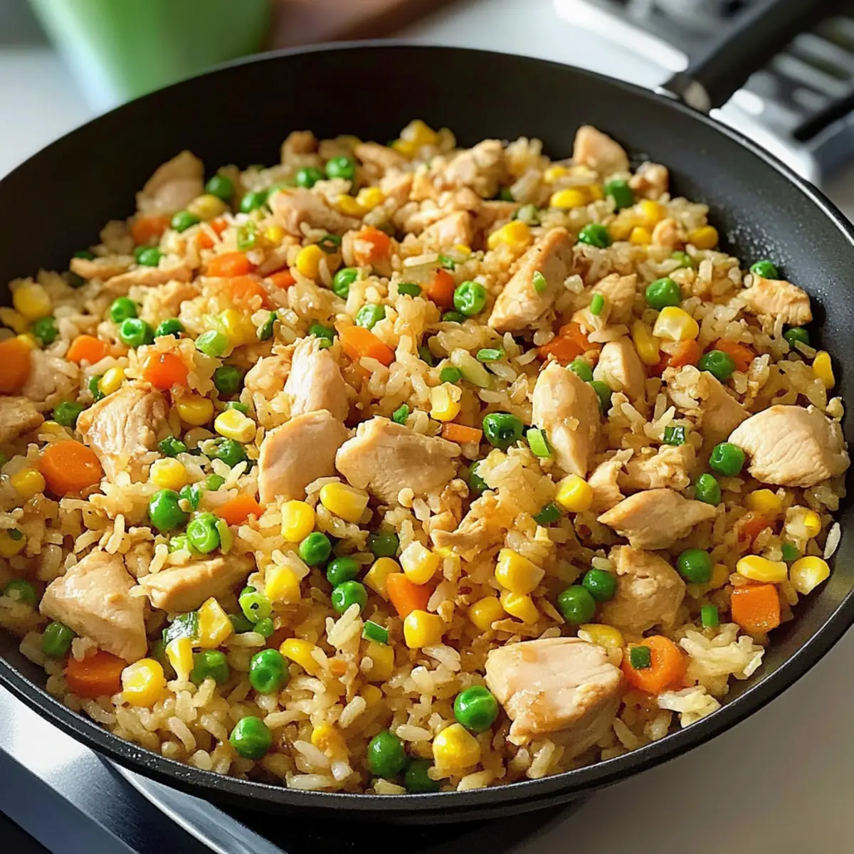 Asiatischer Hähnchen gebratener Reis in 20 Minuten