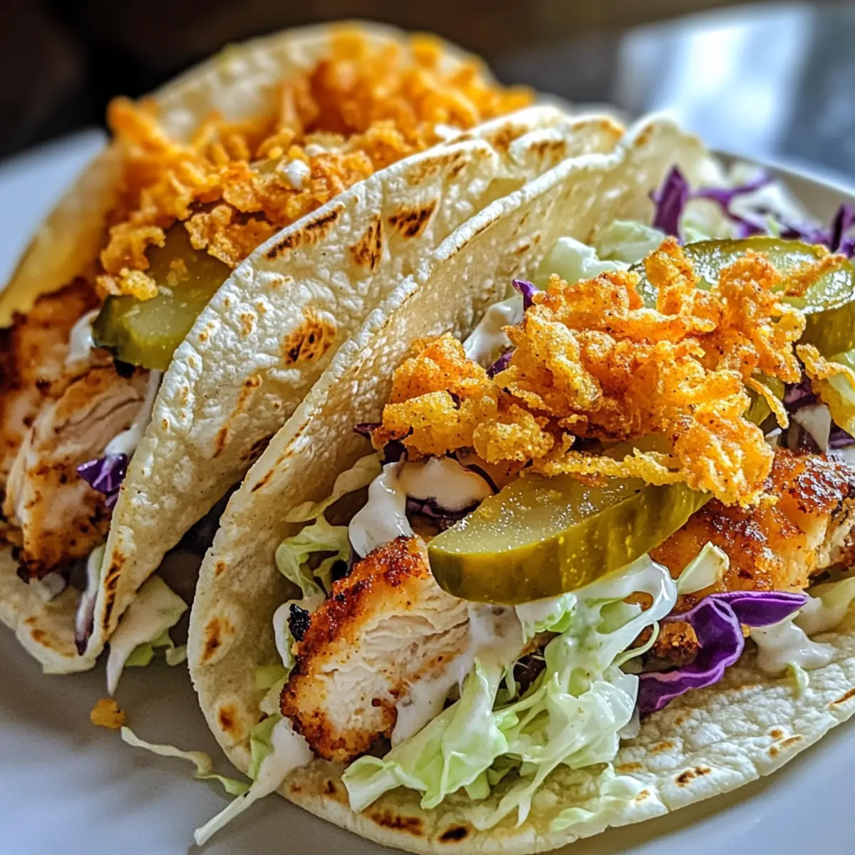Dillgurken-Ranch-Smashed-Hühnchen-Tacos für Genuss