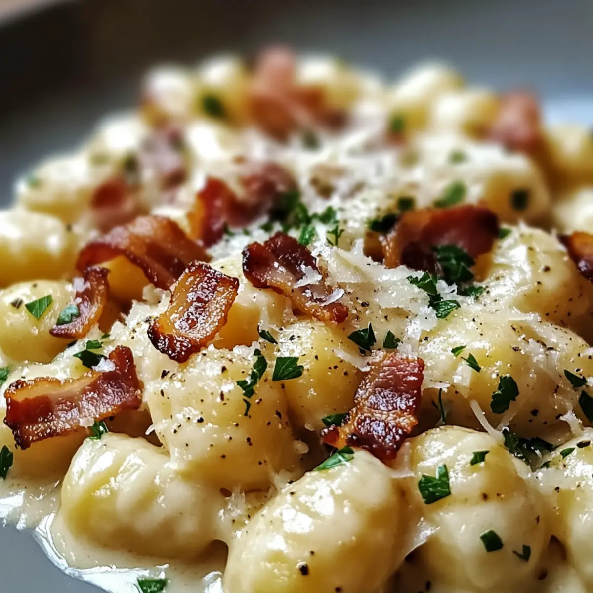Gnocchi Carbonara mit Speck und Parmesan genießen
