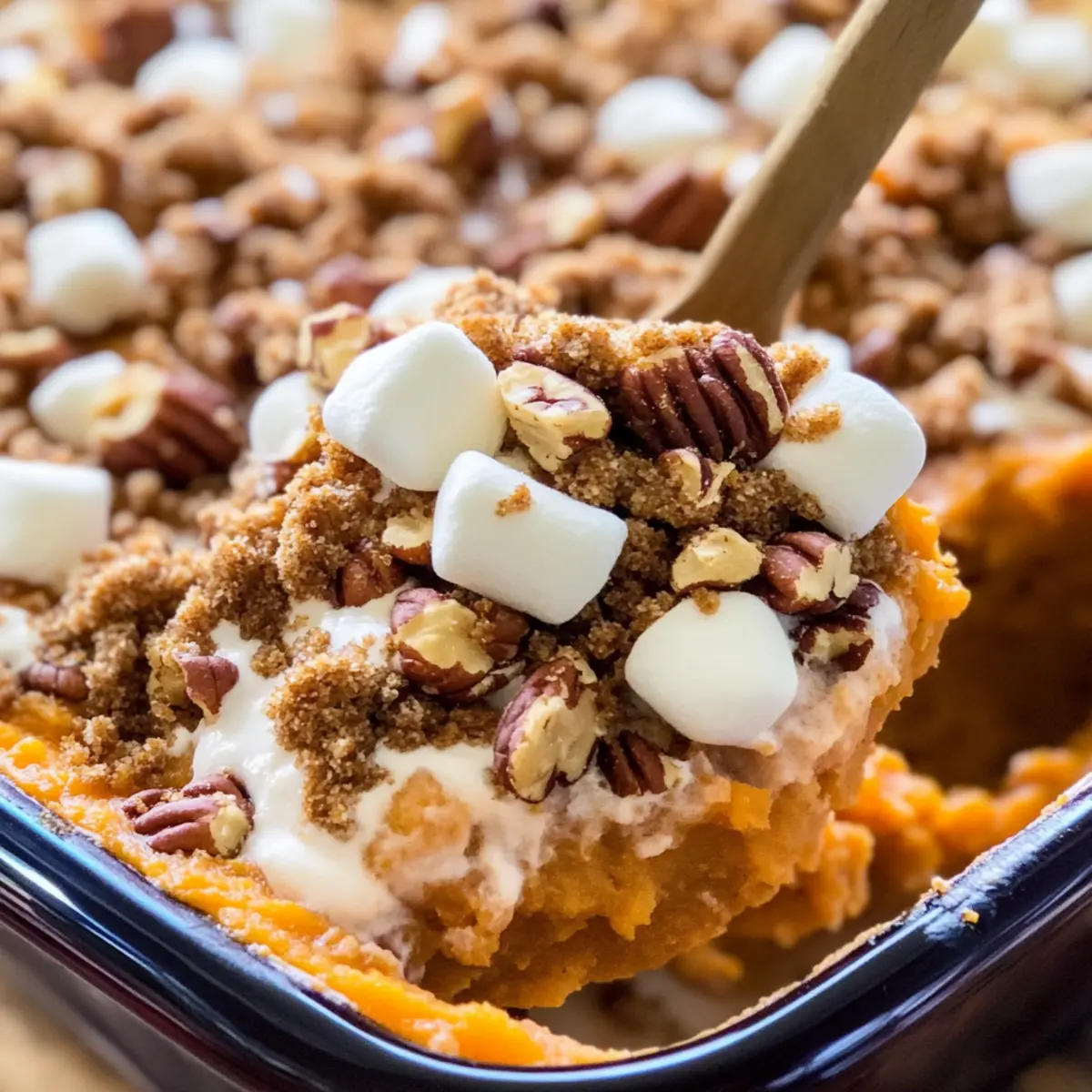 Süßkartoffelauflauf mit knusprigem Pecantopping