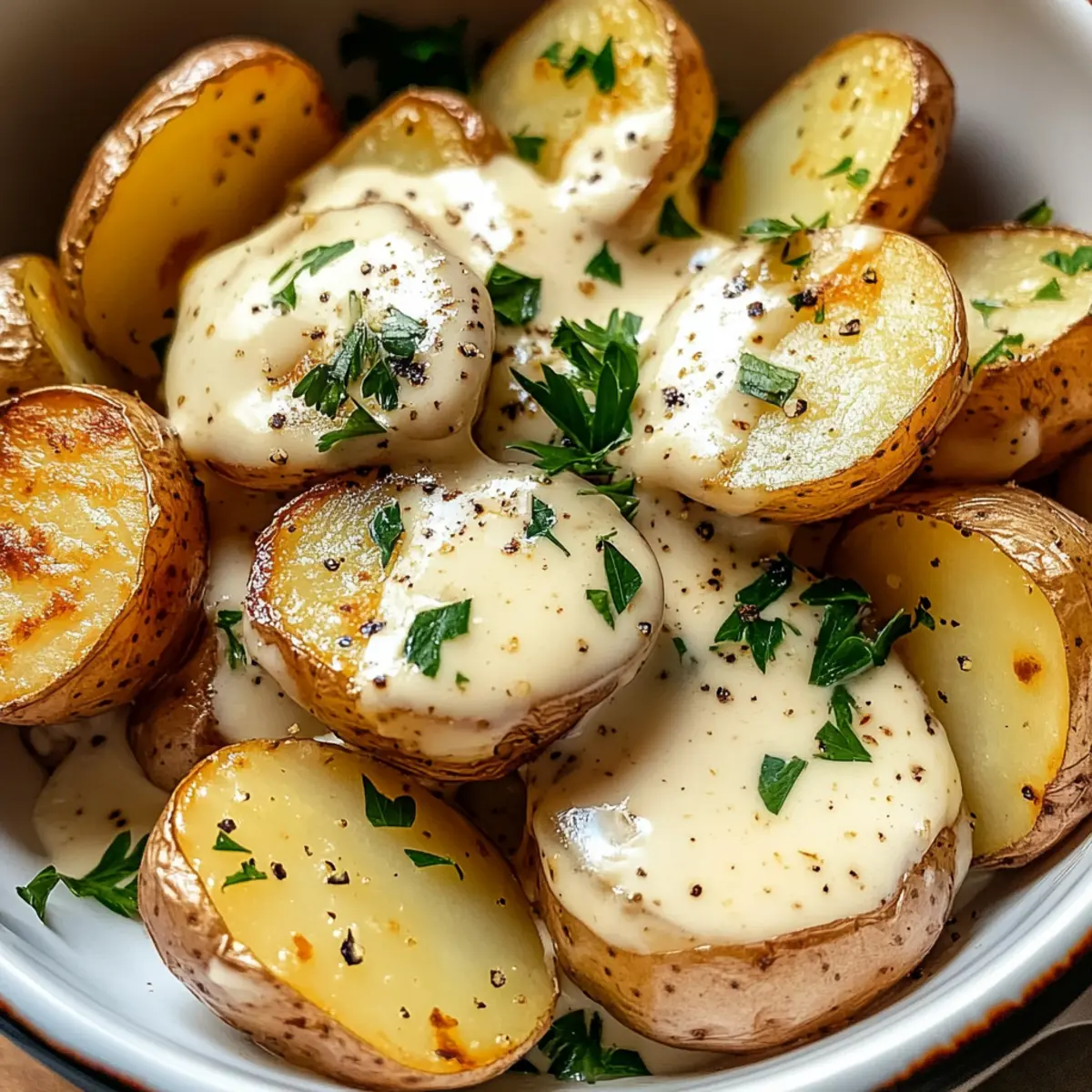 Cremige Knoblauchsoße Baby Kartoffeln für Genuss pur