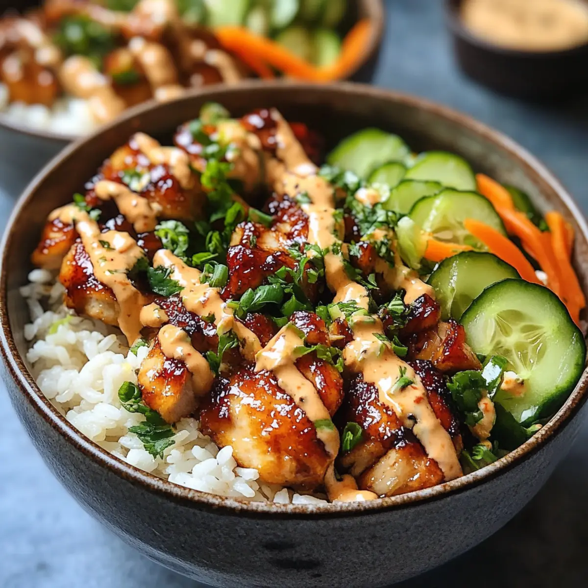 Klebrige Hähnchen-Reisbällchen mit scharfer Mayo