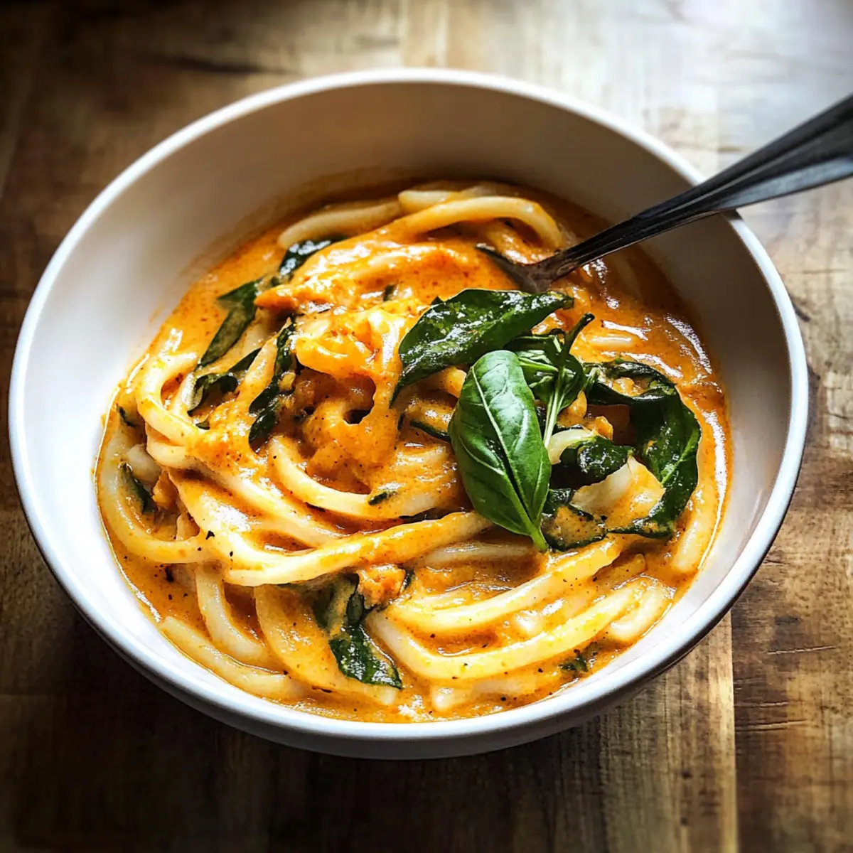 Cremige thailändische rote Curry-Udon-Nudeln schnell gemacht