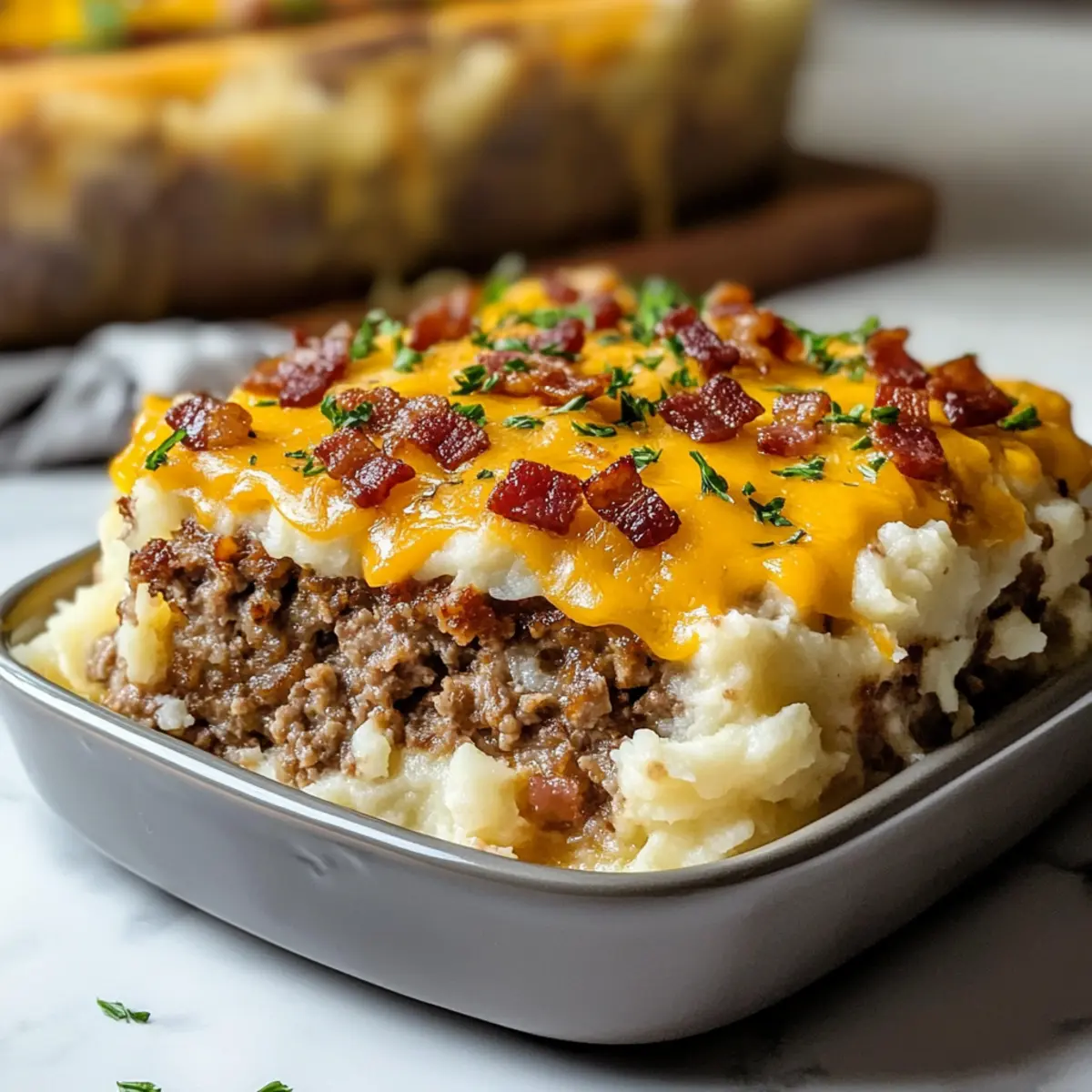 Beladener Kartoffel- und Hackbraten-Auflauf für die Familie