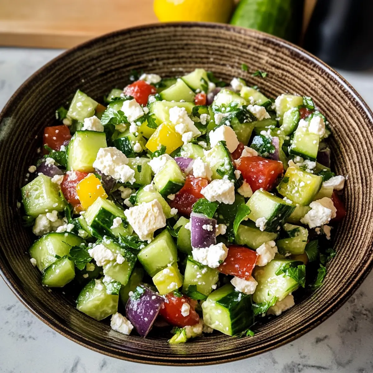 Gurken-Feta-Salat mit Zitronen-Griechischem Vinaigrette