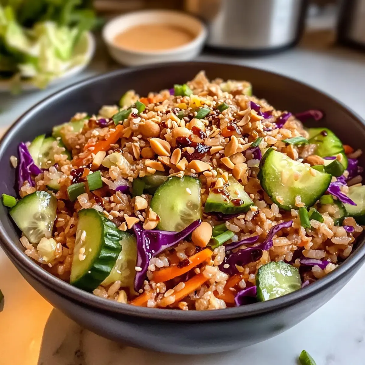 Krosser Reissalat mit Erdnuss-Sesamdressing genießen