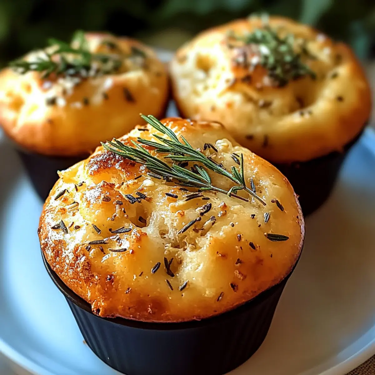 Goldene Kruste Knoblauch Rosmarin Focaccia Muffins