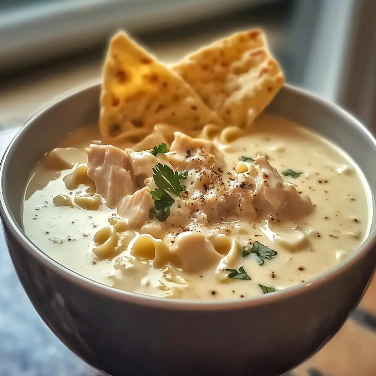 Cremige Hühnchen Alfredo Suppe für Wohlfühlmomente