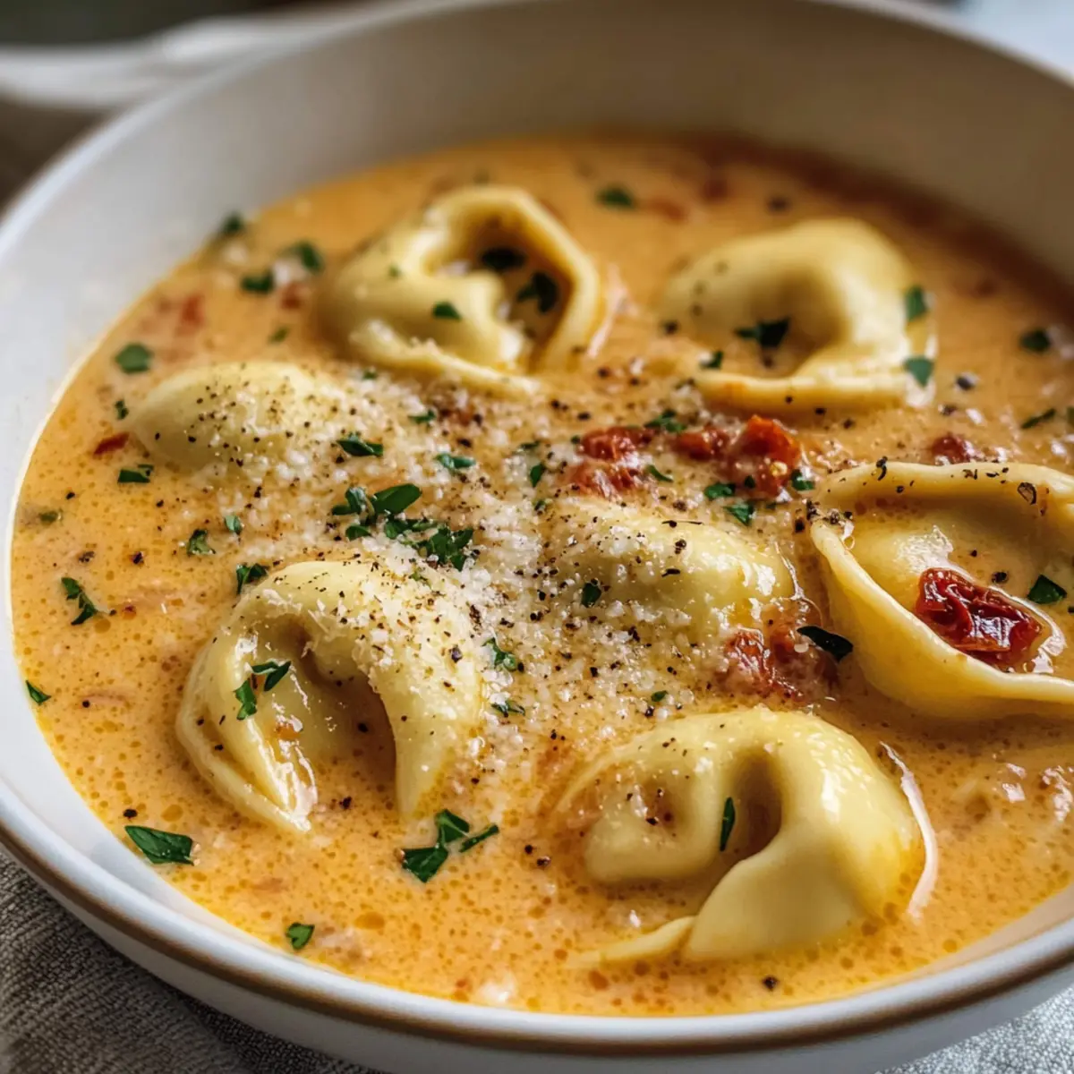 Käse-Tomaten-Tortellini-Suppe für gemütliche Abende