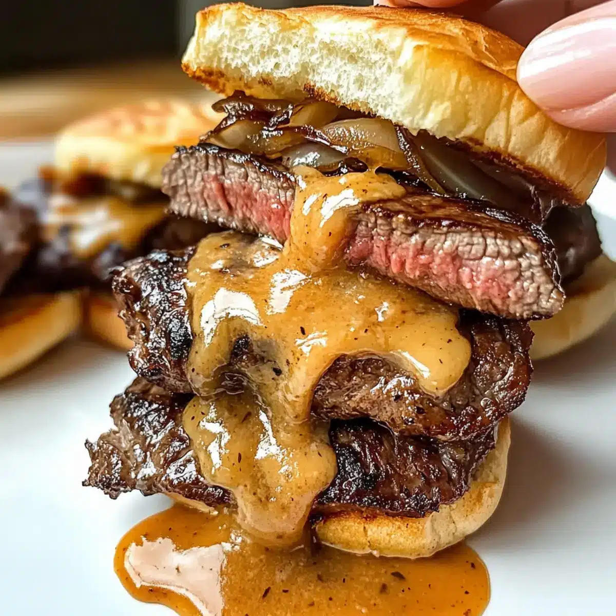 - Karamellisierte Zwiebeln – Süße, die das würzige Steak ergänzt und Tiefe hinzufügt.