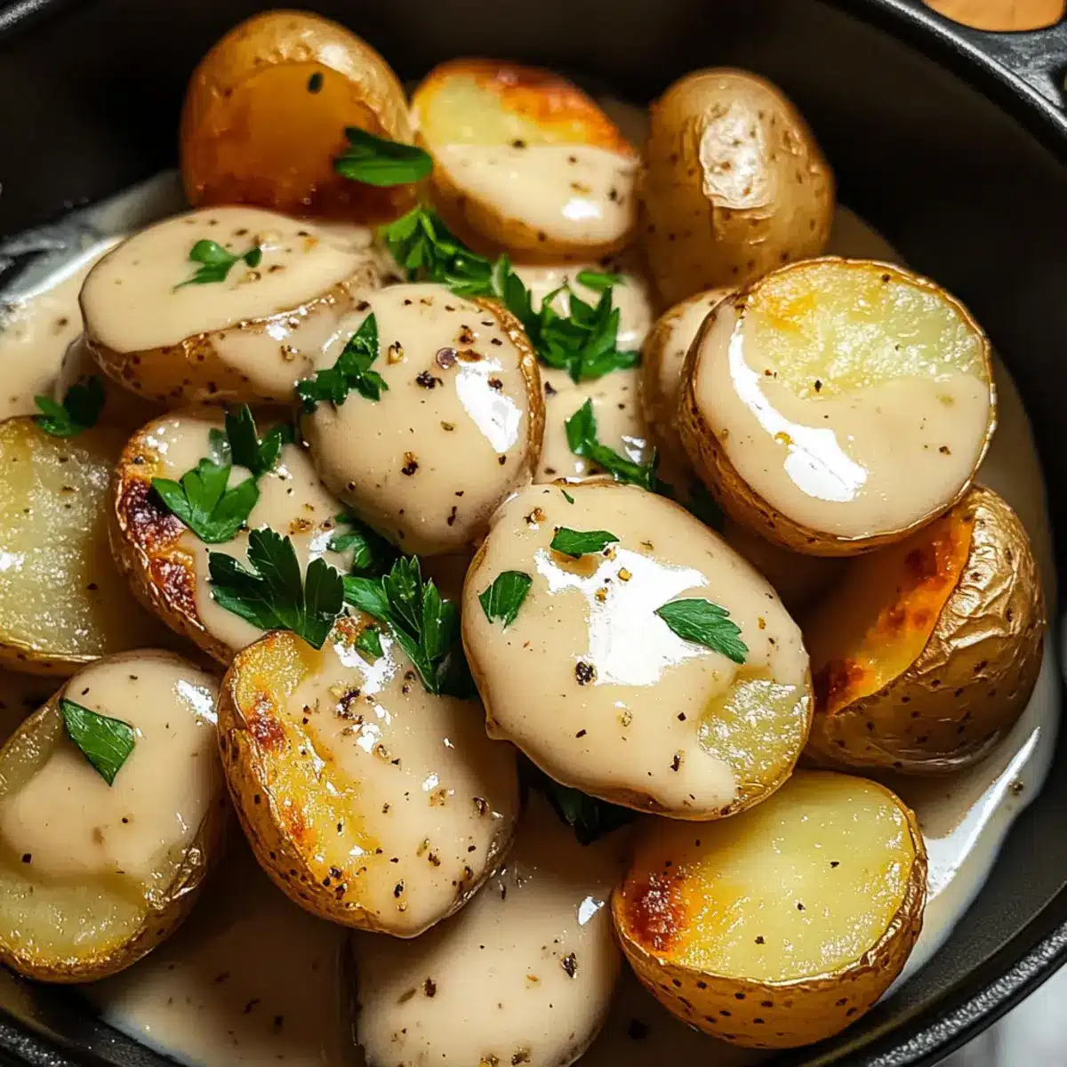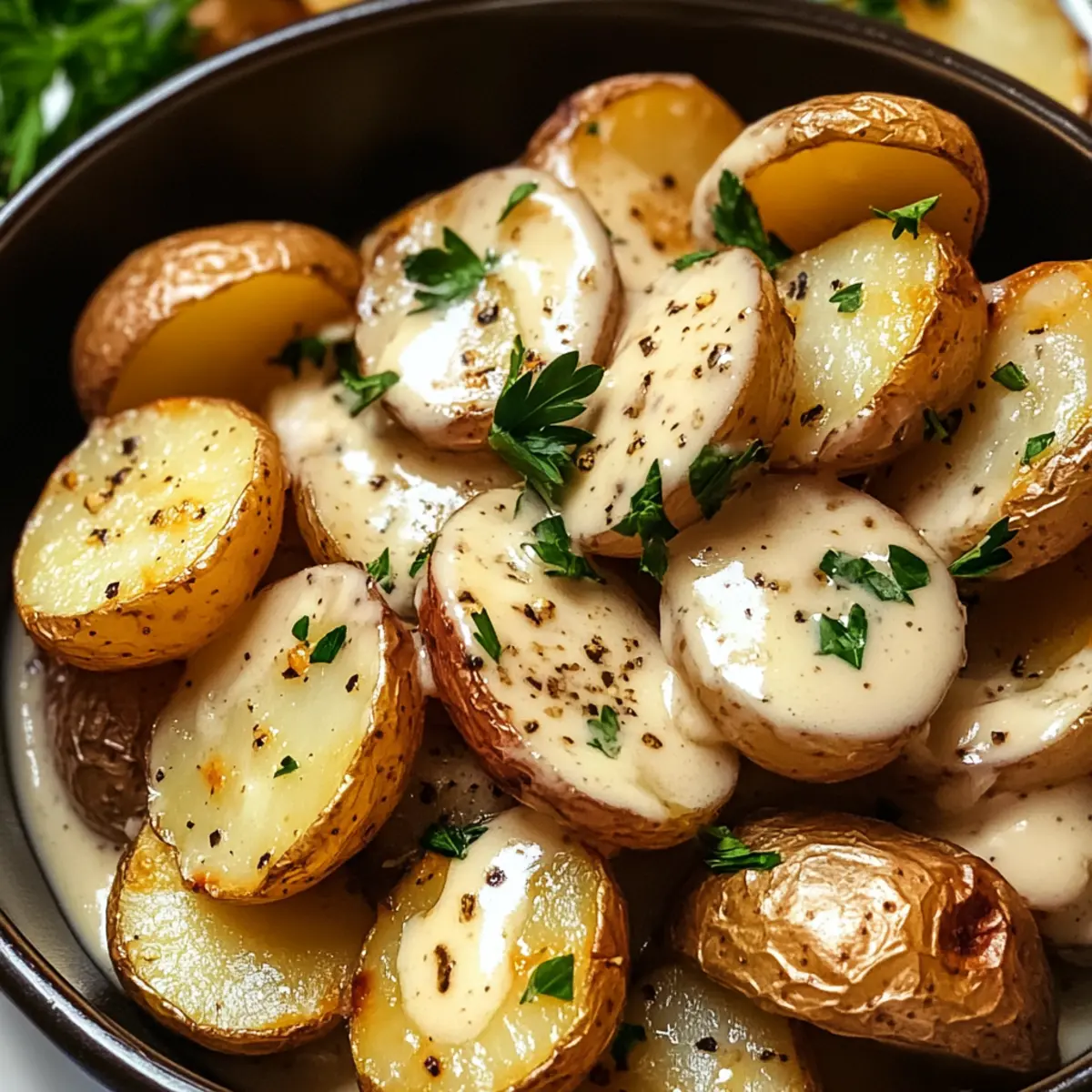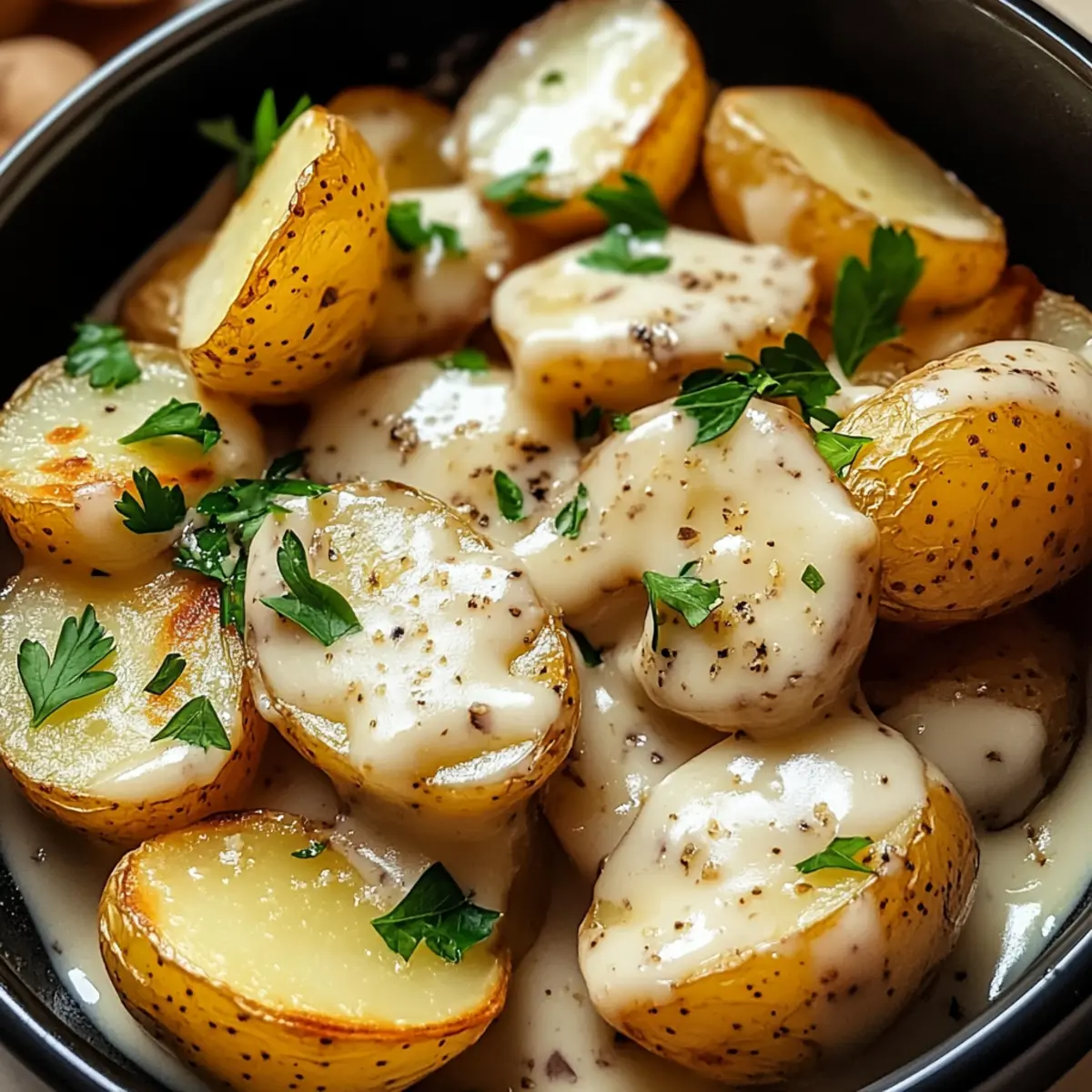 Genuss pur: Diese cremigen Knoblauchsoße Baby Kartoffeln sind der Inbegriff von Komfortessen – zart und vollgepackt mit Geschmack.