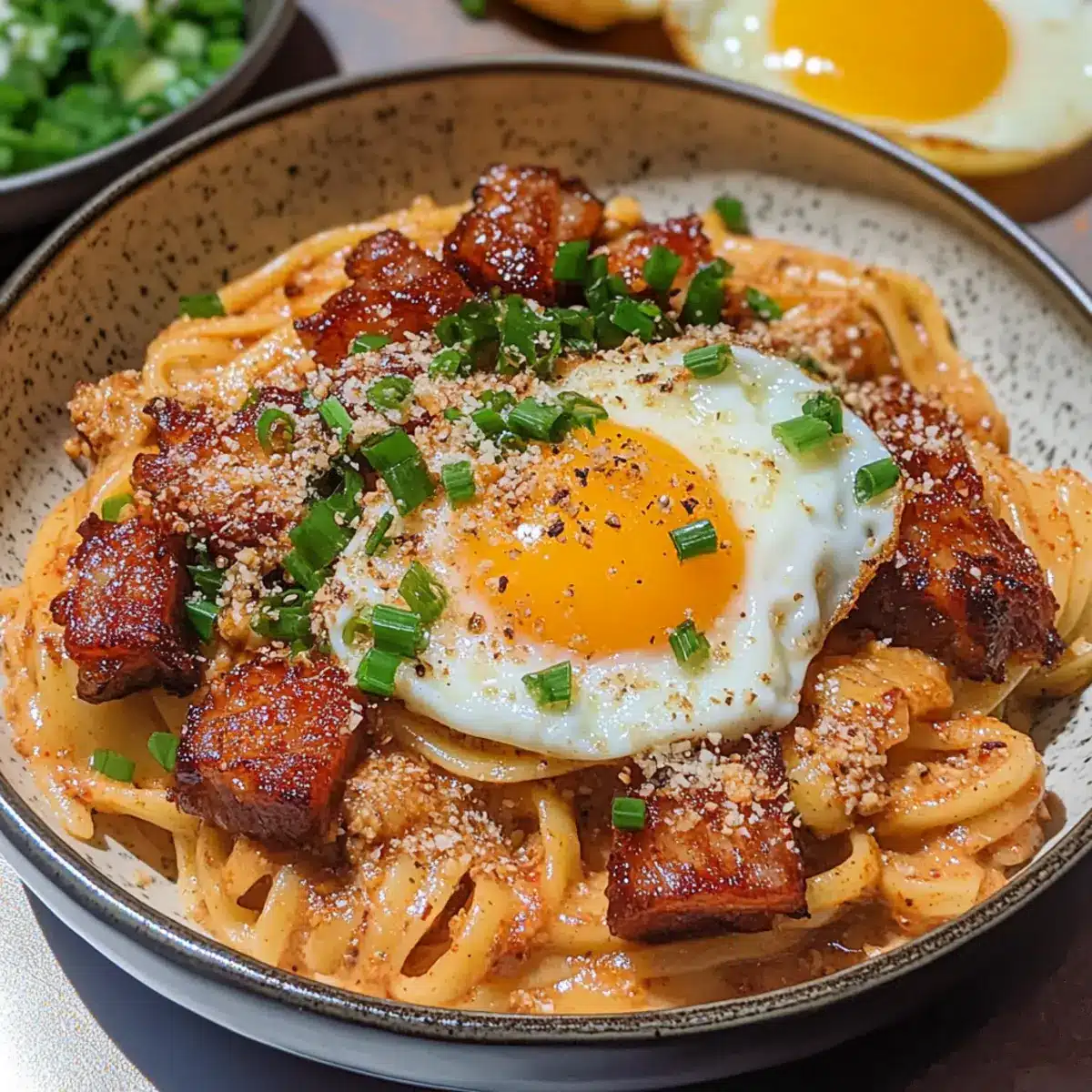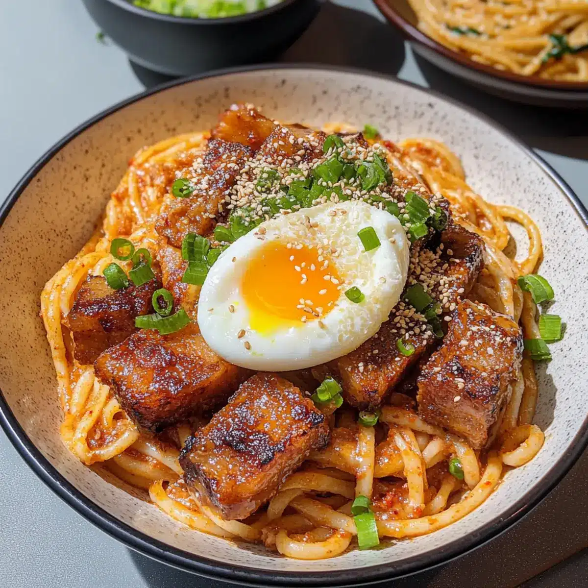 Achten Sie darauf, frischen Schweinebauch zu verwenden, der gut marmoriert ist, da dies für die nötige Saftigkeit sorgt. Wenn Sie Ssamjang nicht finden können, ist Gochujang eine schärfere, köstliche Alternative. Wählen Sie für die Pasta erste Qualität, um die Aromen bestmöglich aufzunehmen.