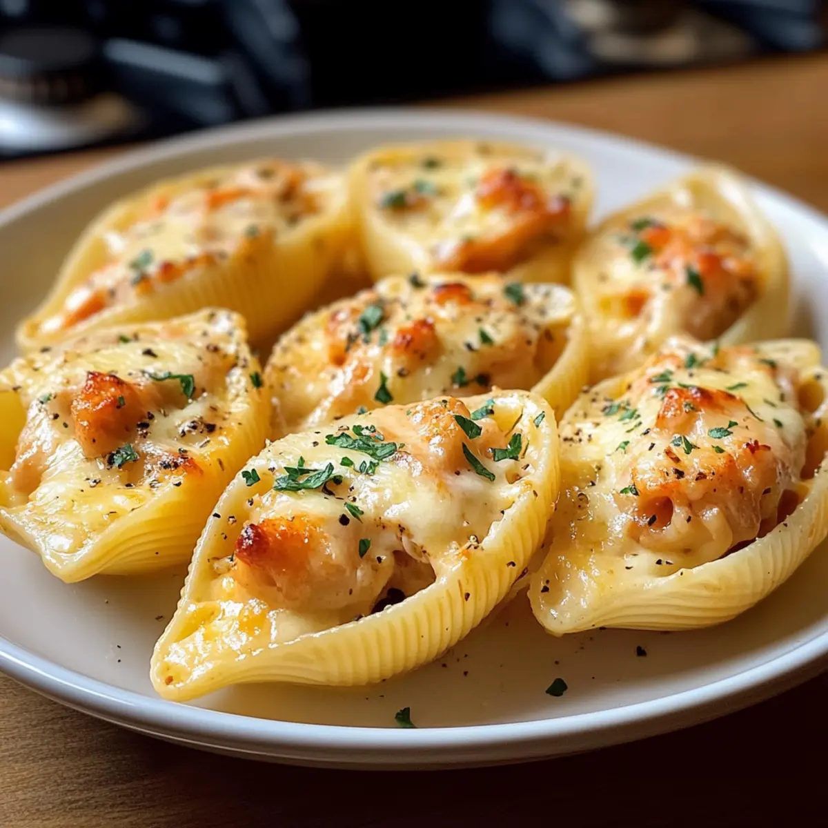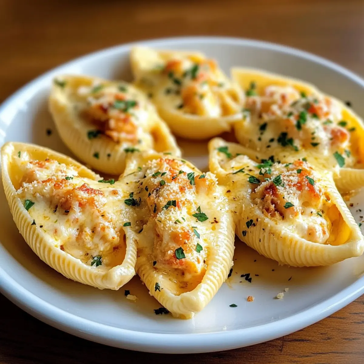 Cremige Meeresfrüchte gefüllte Muscheln für Feinschmecker