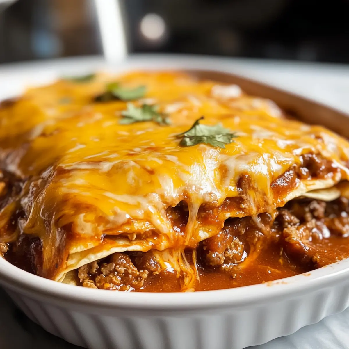 Leckere Dutch Oven Rindfleisch Enchilada Auflauf