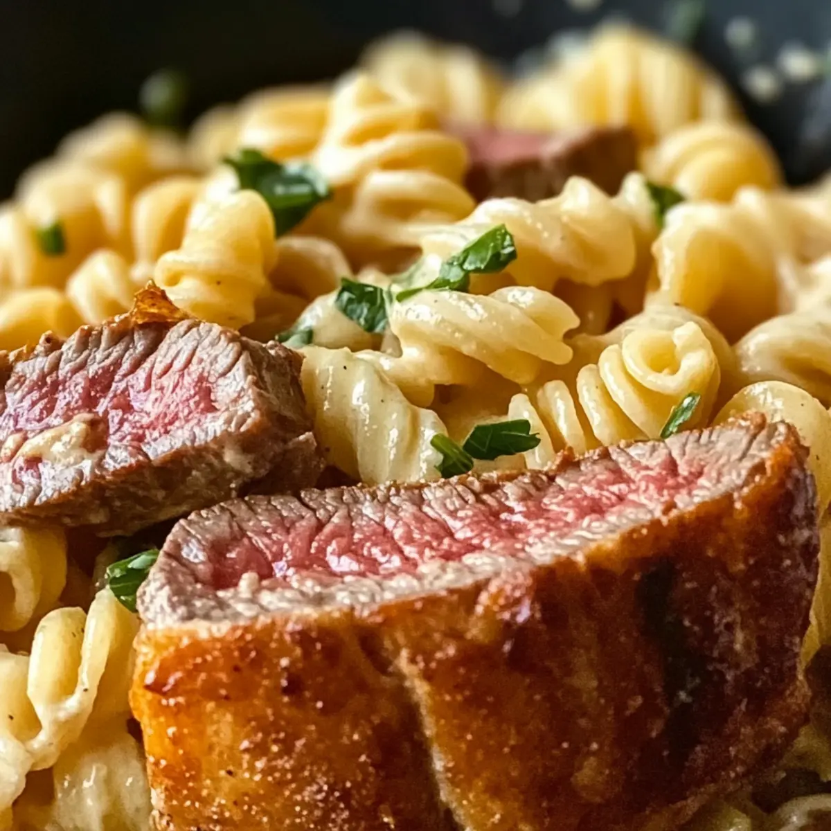 Du kannst Reste bis zu 3 Tage in einem luftdichten Behälter im Kühlschrank aufbewahren. Achte darauf, das Gericht vollständig abkühlen zu lassen, bevor du es lagern. Um die Frische zu erhalten, ist es hilfreich, die Sauce separat von der Pasta und dem Steak aufzubewahren, falls möglich.