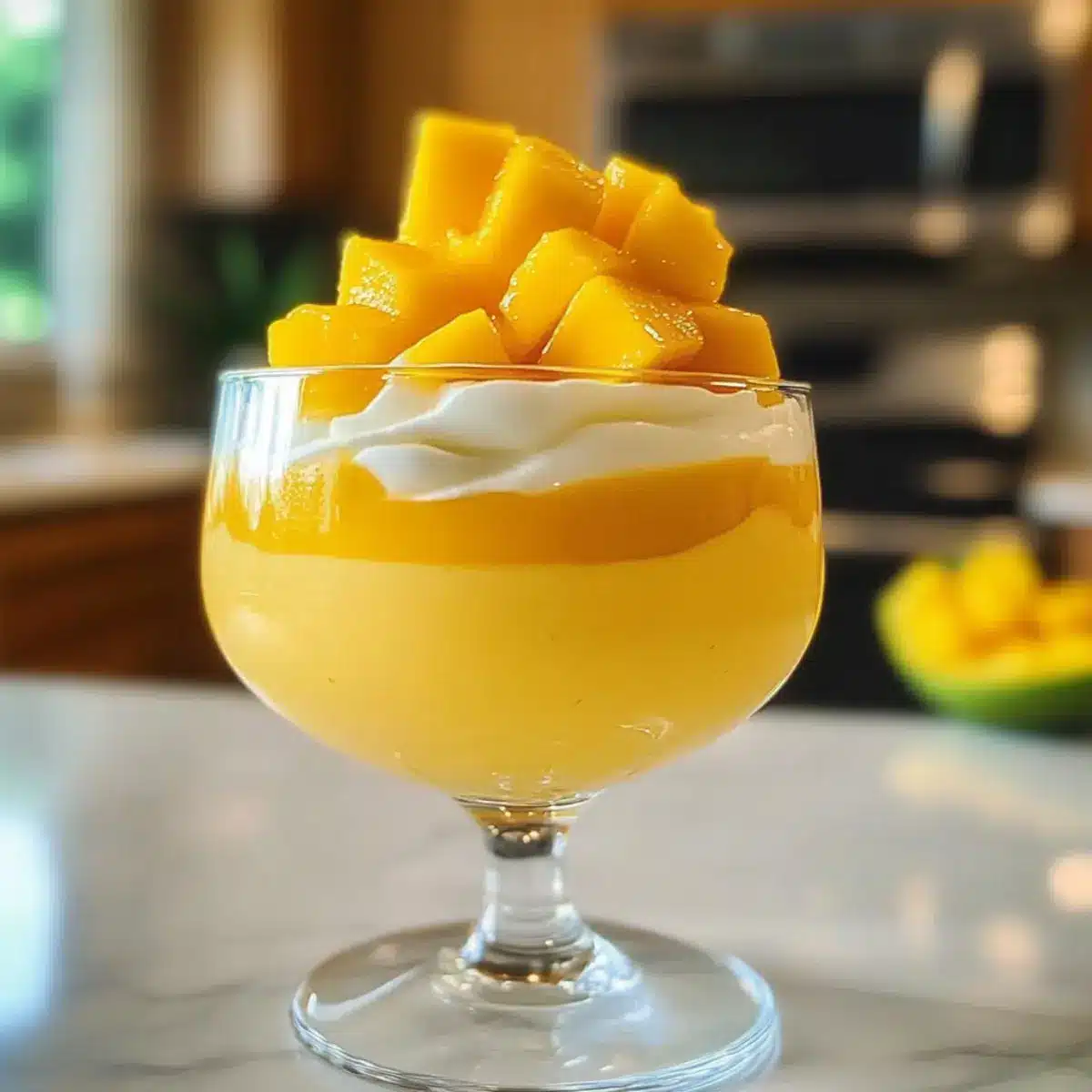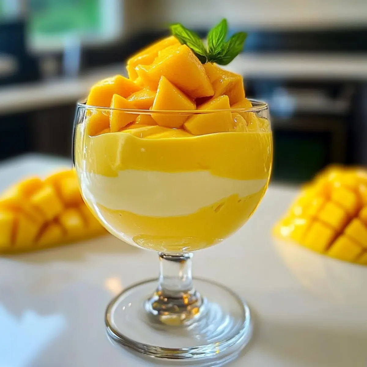 - Garnieren Sie die Mousse vor dem Servieren mit frischen Mangostücken.