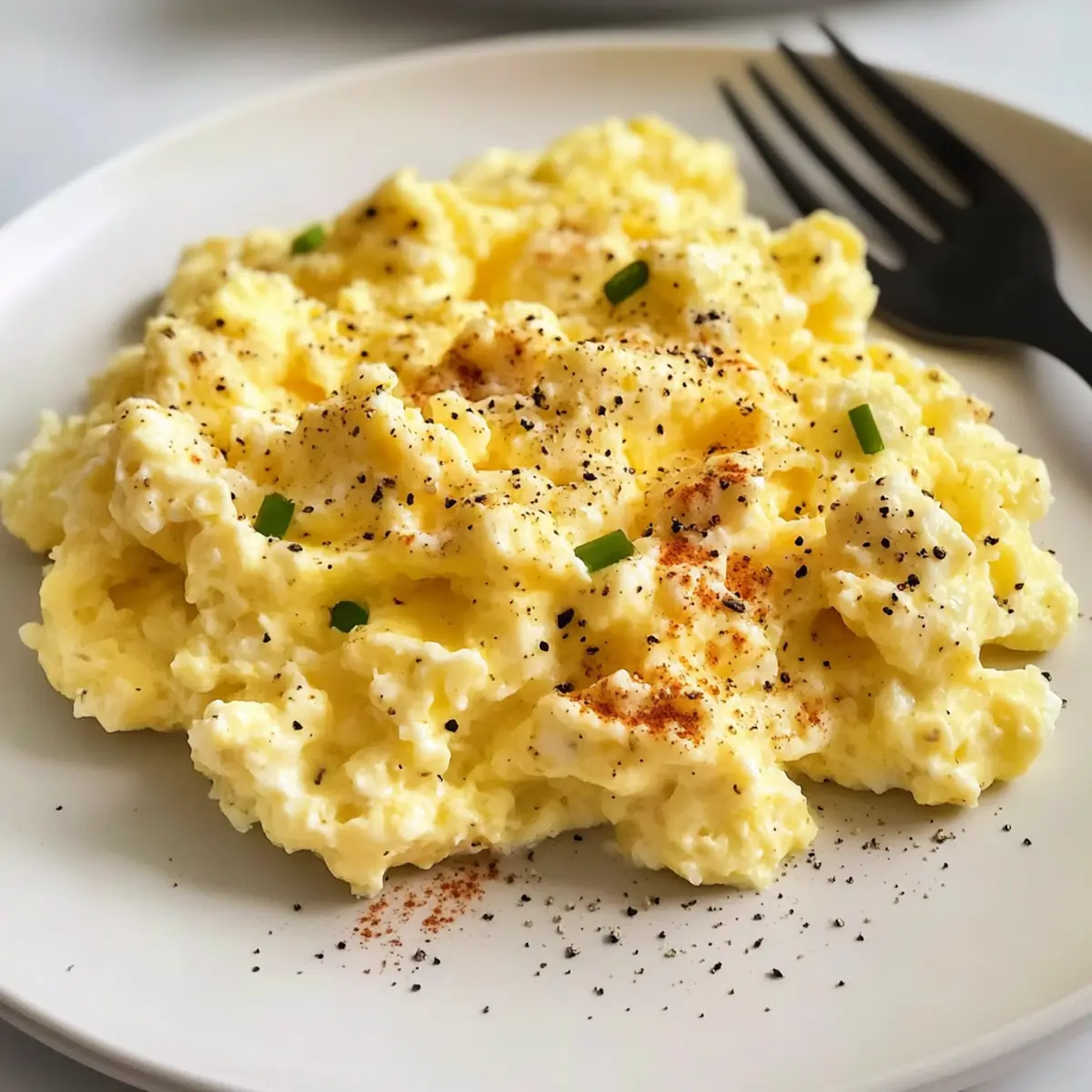 Genieße diese cremigen Rühreier zu leckeren Beilagen, die den Frühstückstisch abrunden und deinem Gaumen schmeicheln.