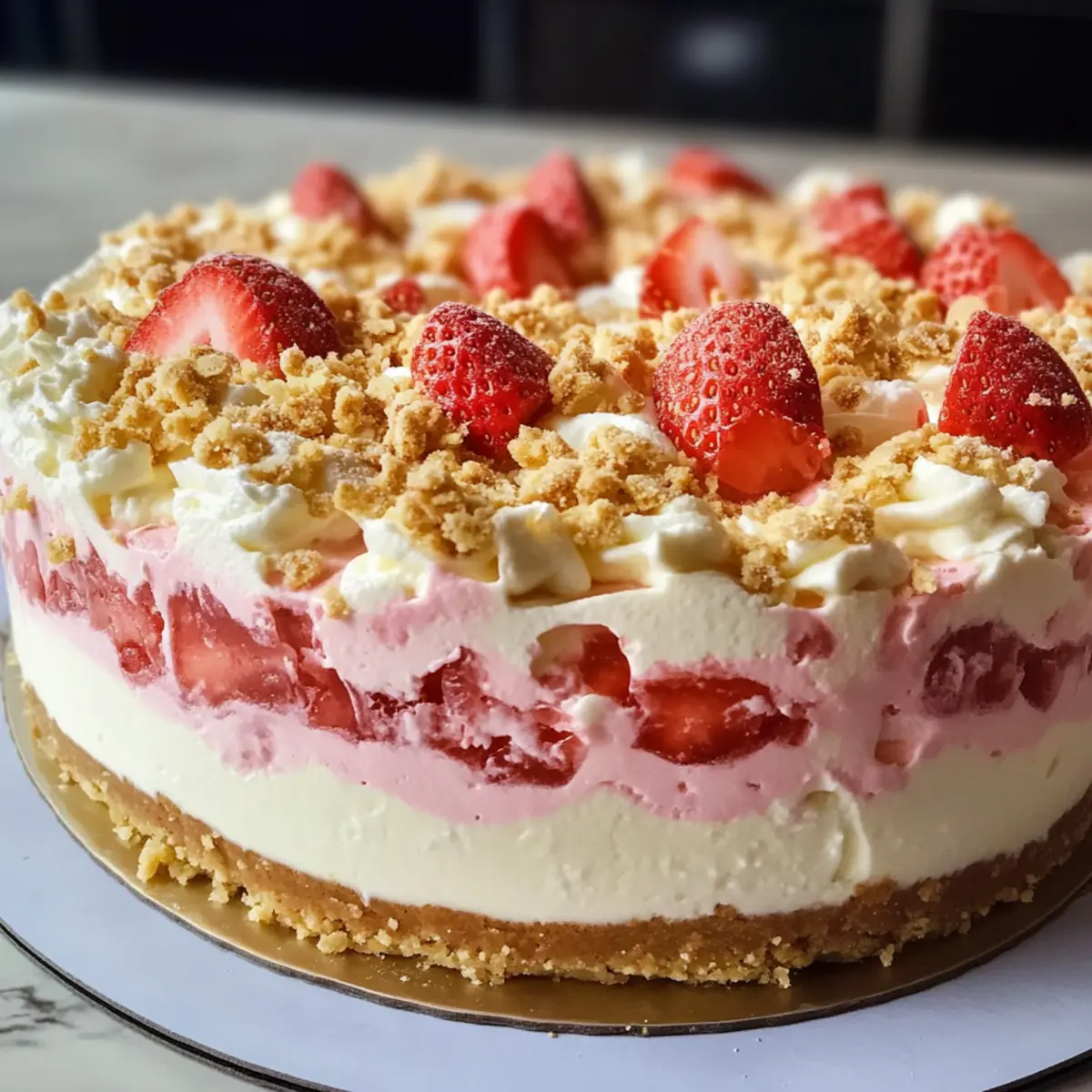 Erdbeer Crunch Käsekuchen ohne Backen genießen
