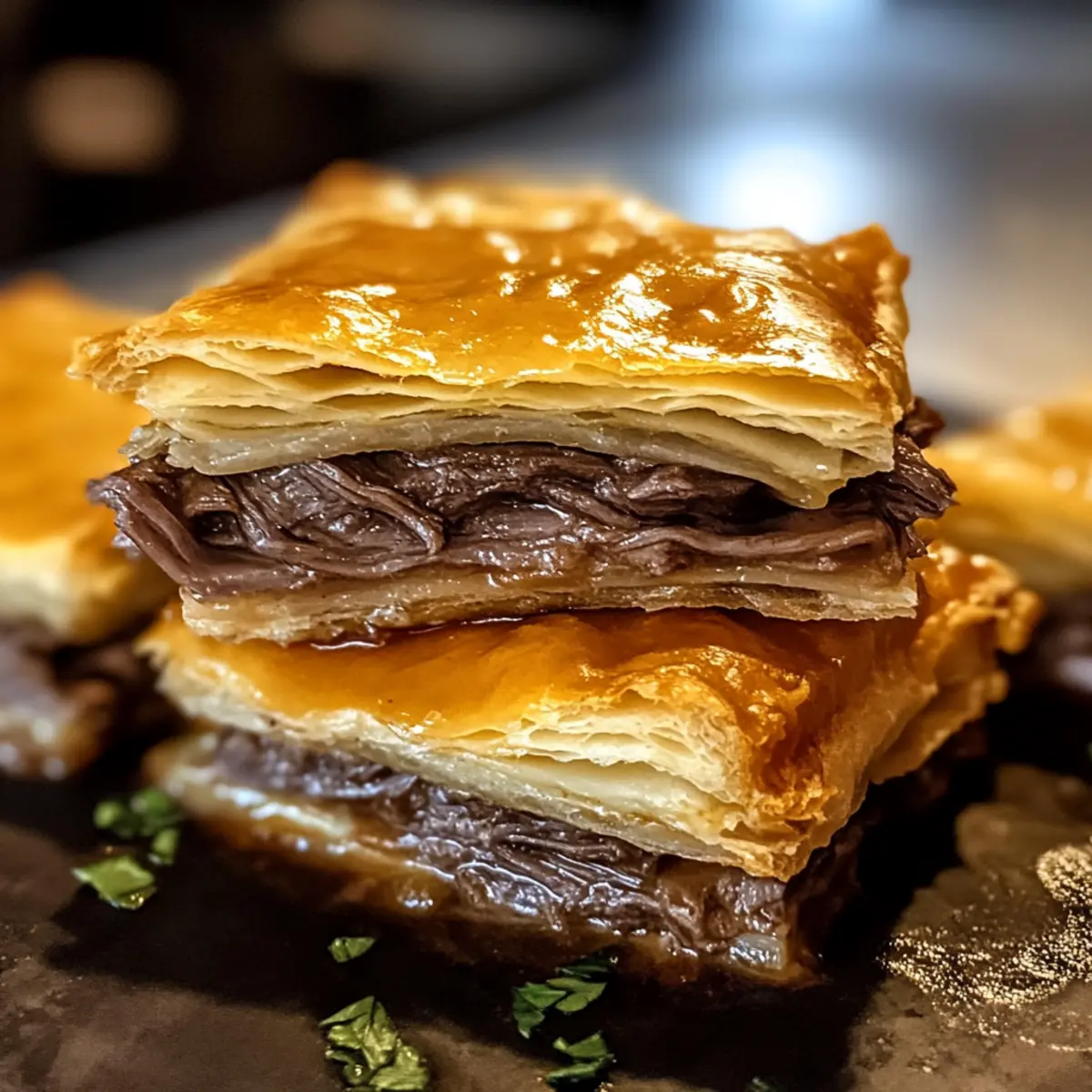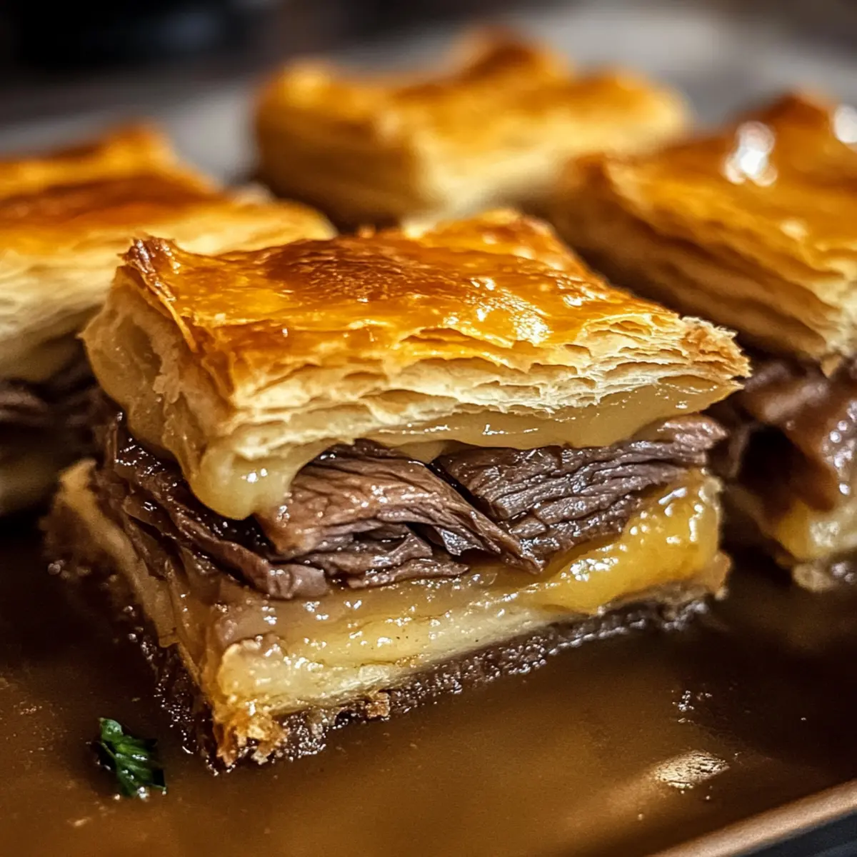 • Füllungen variieren: Sei kreativ und ersetze das Roastbeef durch Hühnchen oder Gemüse, um dein eigenes Rezept für Französische Dip-Quadrate zu kreieren.