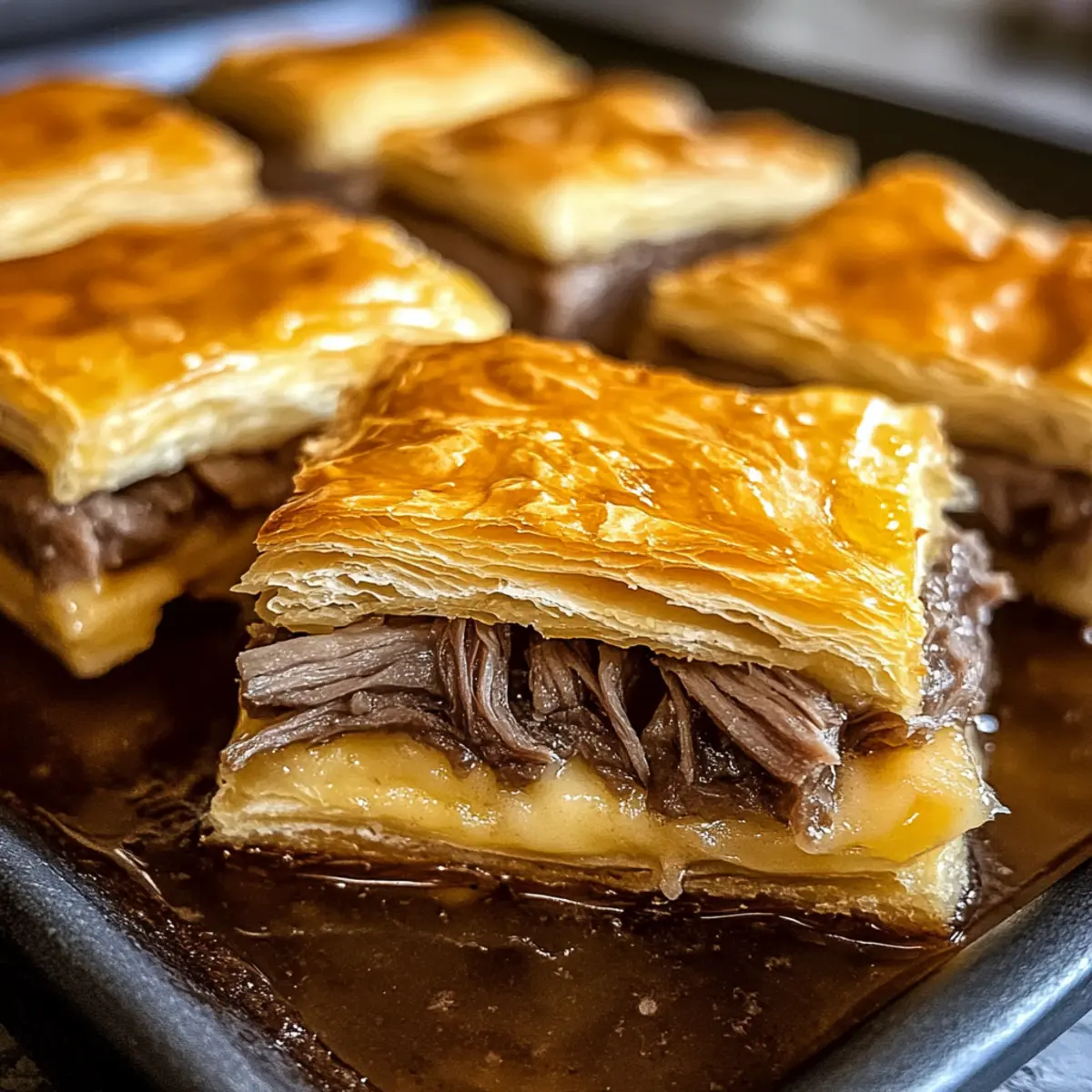 Einfachheit: Die Zubereitung dieser Französischen Dip-Quadrate ist kinderleicht und benötigt nur Grundkenntnisse beim Backen. Herzhafter Geschmack: Die Kombination aus zartem Roastbeef und schmelzendem Schweizer Käse macht jeden Bissen zu einem Geschmackserlebnis. Teilen macht Spaß: Perfekt für gesellige Abende, sind sie ideal, um mit Freunden und Familie zu genießen. Vielseitig: Variieren Sie die Füllung nach Lust und Laune, wie mit Sautéed Mushrooms oder verschiedenen Käsesorten. Schnell zubereitet: In weniger als 30 Minuten aus dem Ofen auf den Tisch – ideal für hektische Wochentage. Ein wahrer Crowd-Pleaser: Egal, ob bei einem Potluck oder einem entspannten Abendessen, diese Quadrate werden garantiert der Hit sein!