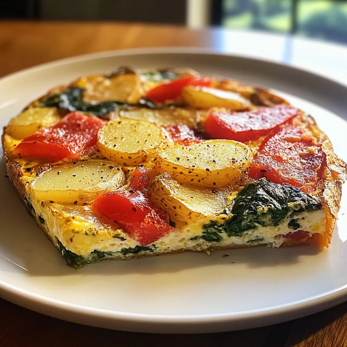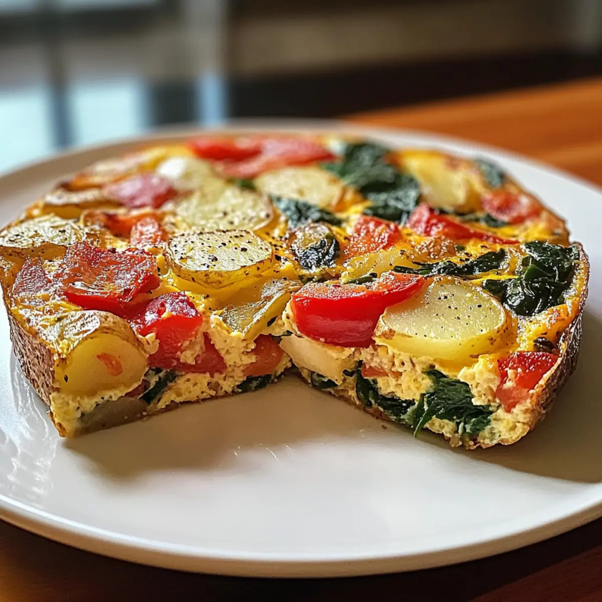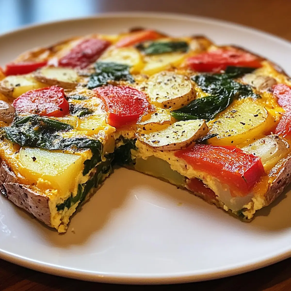 Diese Frittata mit Kartoffeln, roten Paprika und Spinat ist nicht nur ein Genuss für den Gaumen, sondern auch ein Fest für die Augen!