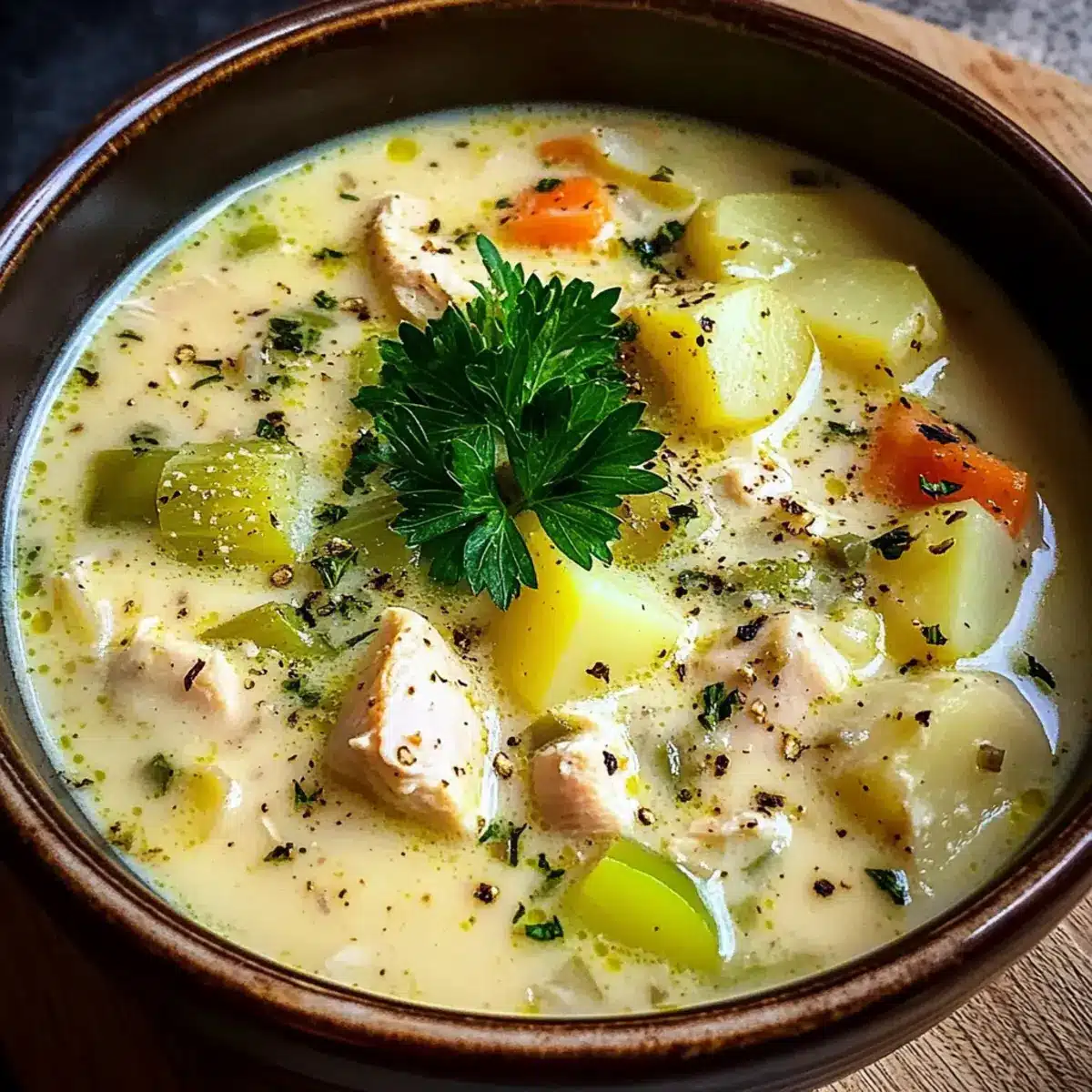 Herzhafter Geschmack: Mit zartem Hähnchen und süßem Lauch begeistert diese cremige Suppe jeden Gaumen und sorgt für unvergessliche Momente am Esstisch.