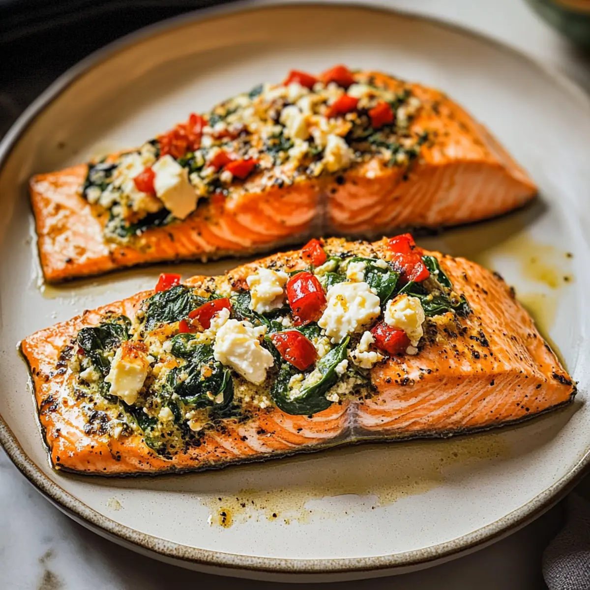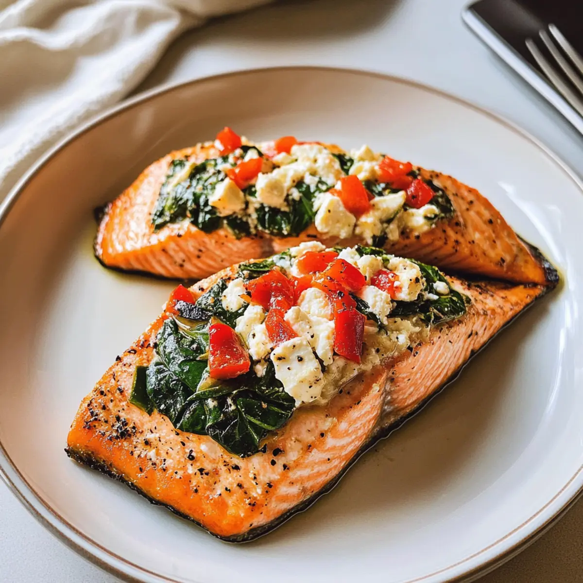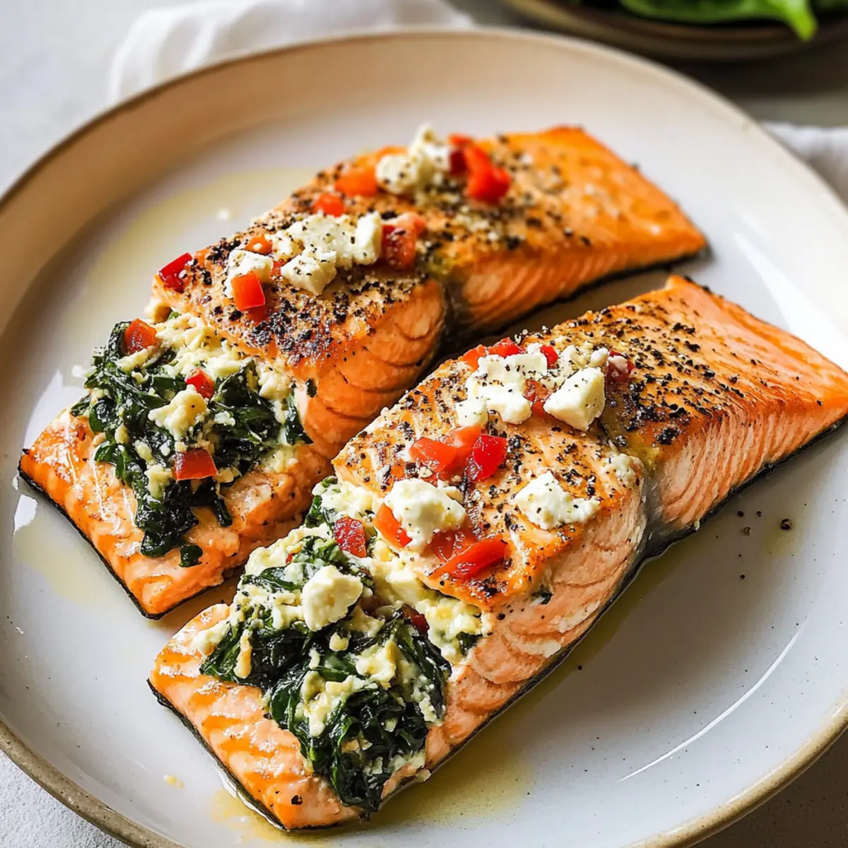Die Zubereitung des gefüllten Lachses mit Spinat und Feta ist perfekt für Meal Prep! Du kannst die Füllung aus Spinat, Feta und Paprika bis zu 3 Tage im Voraus vorbereiten; bewahre sie in einem luftdichten Behälter im Kühlschrank auf, um die Frische zu erhalten. Wenn du bereit bist, das Gericht zu vollenden, schneide die Lachsfilets ein und fülle sie gleichmäßig mit der vorbereiteten Mischung. Backe sie einfach für 12 bis 17 Minuten im vorgeheizten Ofen. Achte darauf, dass der Lachs nicht übergart, damit er zart und saftig bleibt—so hast du luxuriöses Essen mit minimalem Aufwand!