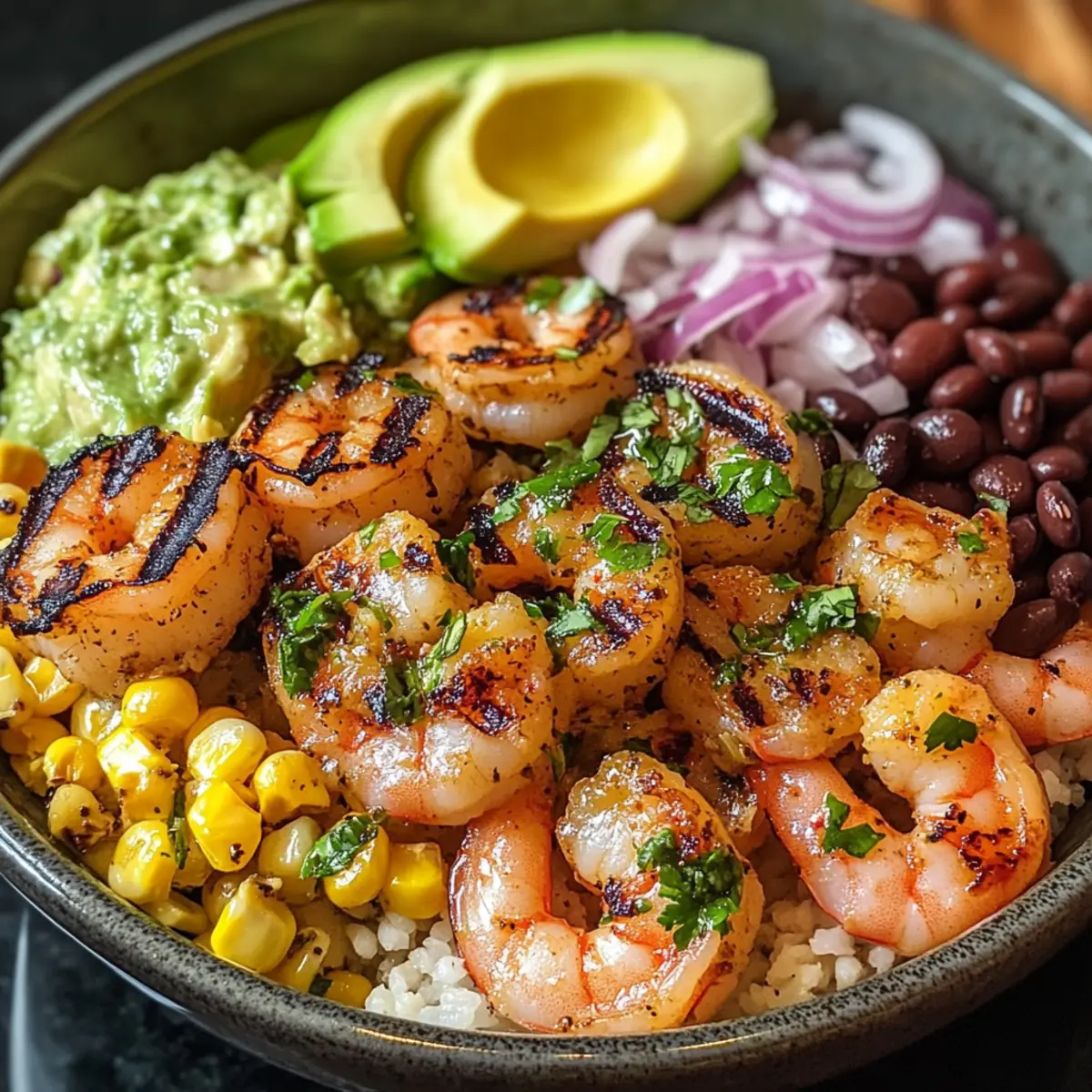 - Zusätzliche Toppings: Scheue dich nicht, kreativ zu sein! Füge nach Belieben weitere Toppings wie Paprika, Mango oder Feta hinzu, um deiner Gegrillte Garnelen-Schüssel eine persönliche Note zu verleihen.