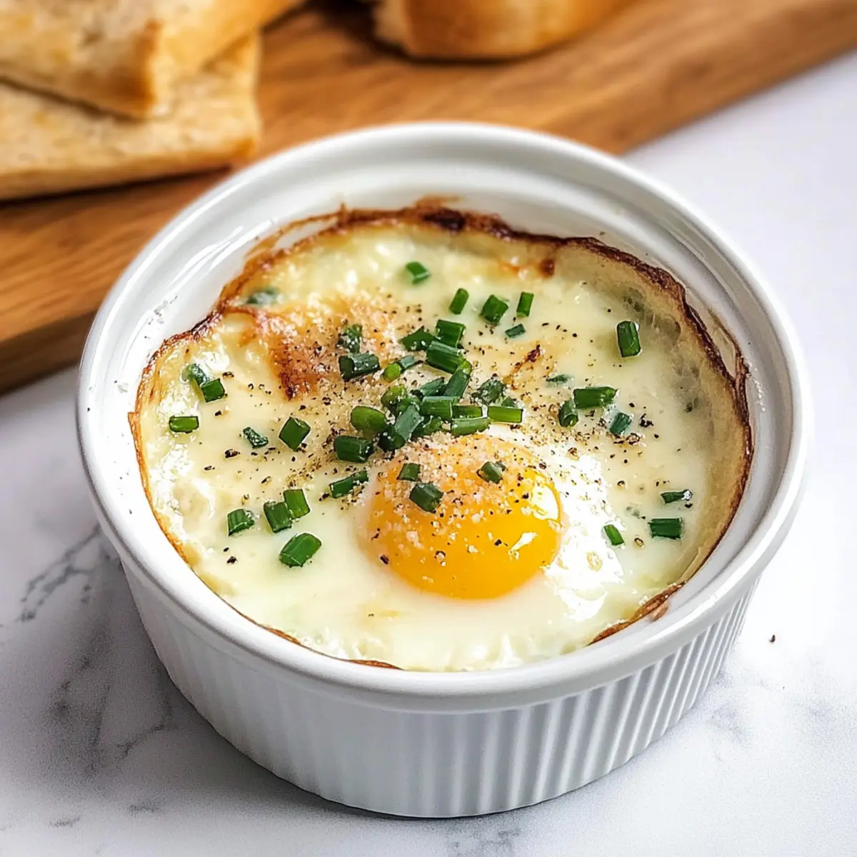- Gemüsige Füllung: Füge gewürfelte Tomaten oder sautierten Spinat hinzu, bevor du die Eier in das Ramekin gibst, um mehr Frische und Farbe zu integrieren.