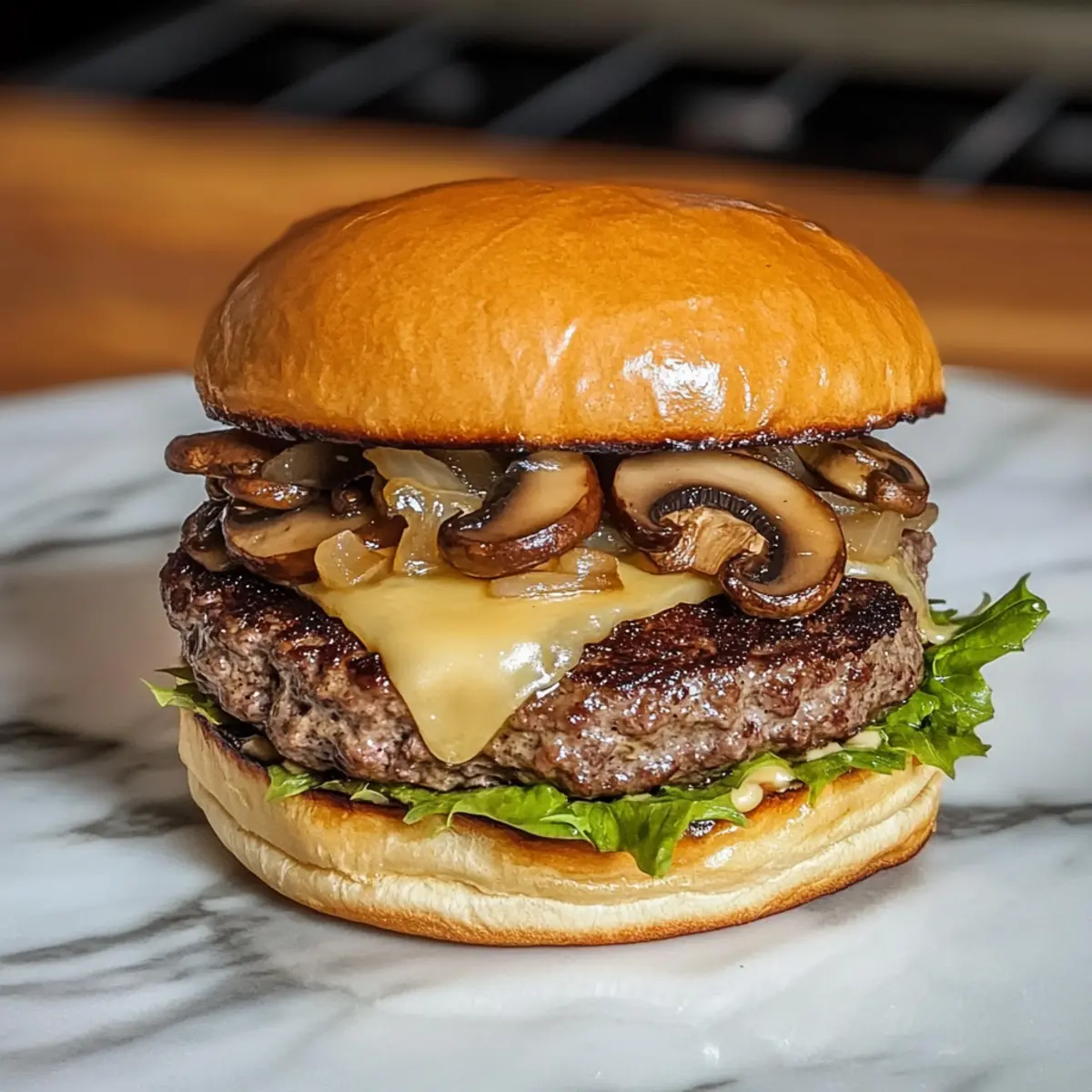- Nehme die frisch gebratenen Patties mit dem geschmolzenen Schweizer Käse und lege sie auf die gerösteten Brötchen. Toppe die Patties mit der aromatischen Pilz-Zwiebel-Mischung und füge deine gewünschten zusätzlichen Beläge hinzu. Serviere die Burger sofort.
