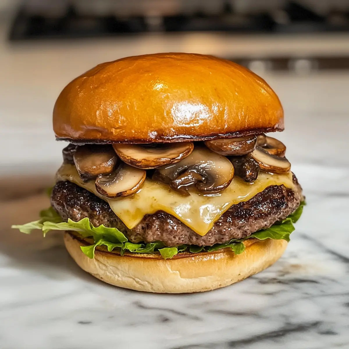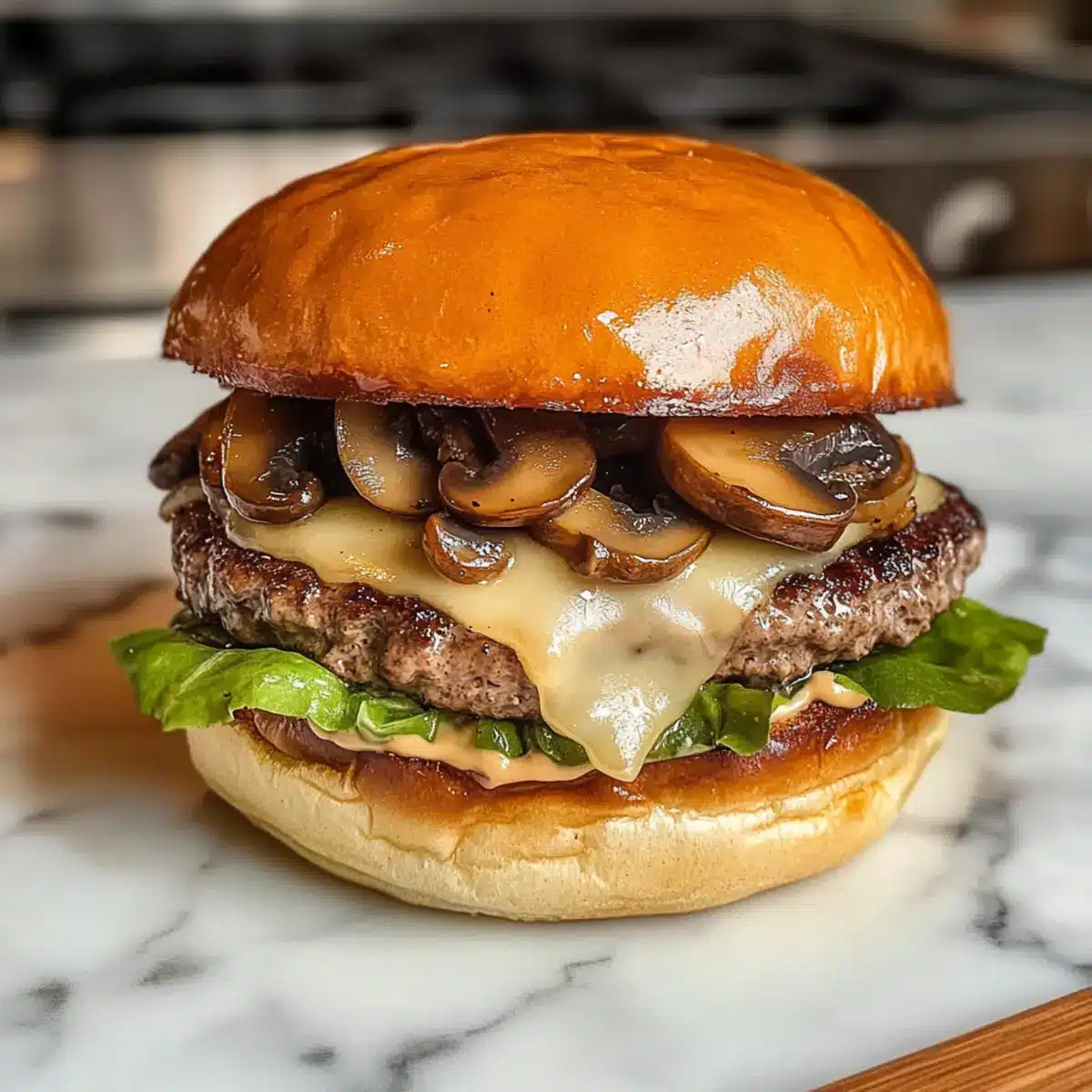 Saftiger Hardee’s Pilz-Swiss Burger für Zuhause