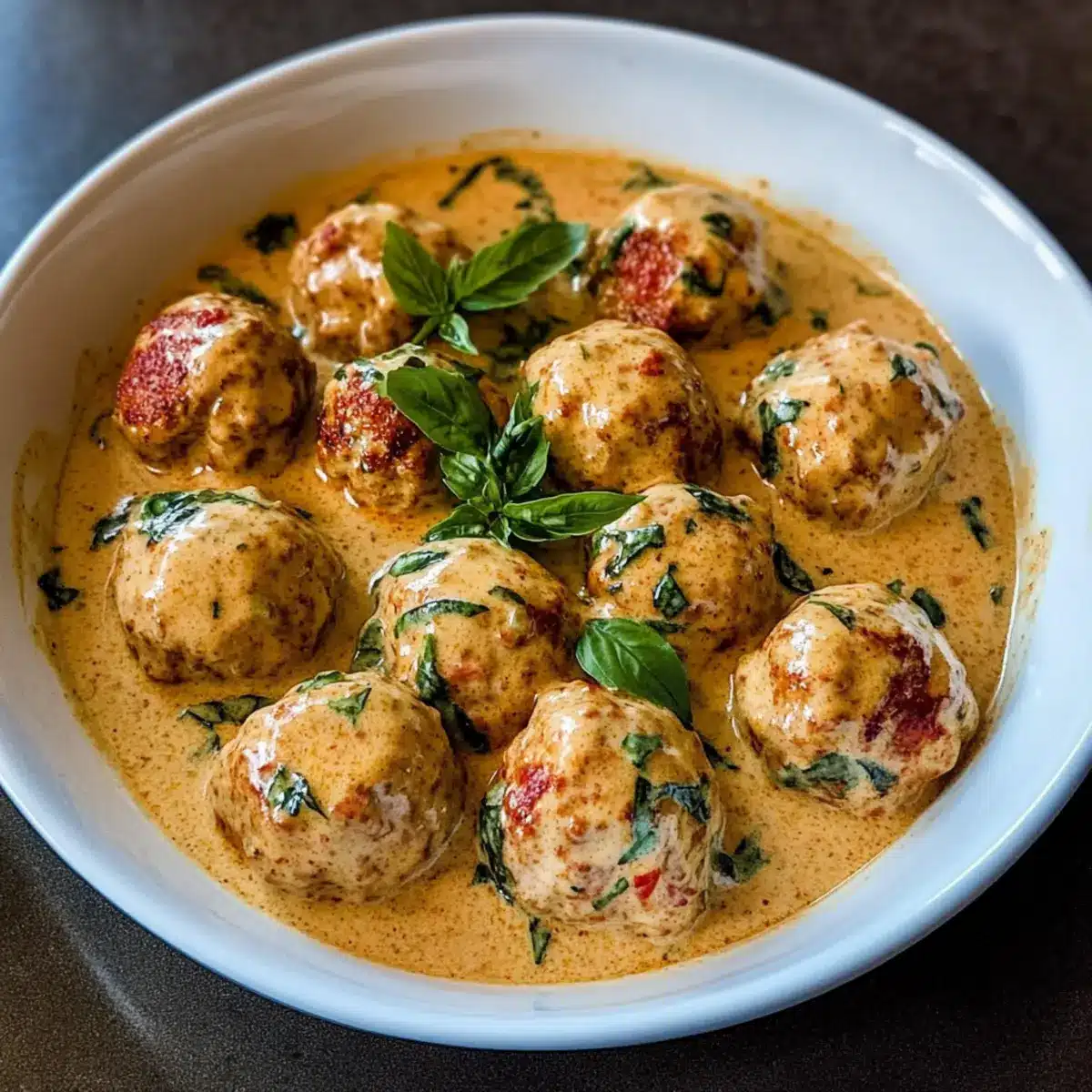 „Hast du schon einmal von einem Gericht gehört, das nicht nur den Magen, sondern auch das Herz erobert? Diese Heirate Mich Hühnchen Fleischbällchen sind eine köstliche Abwandlung des klassischen Gerichts und bringen euch direkt ins Herz der italienischen Küche. Saftige, zarte Fleischbällchen, umhüllt von einer cremigen, würzigen Sauce, machen jede Mahlzeit zu einem besonderen Ereignis. Perfekt für schnelle Familienessen oder romantische Abende, sind diese Fleischbällchen nicht nur ein Genuss, sondern auch ein einfacher Weg, um Komfort und Liebe auf den Tisch zu bringen. Und das Beste? Sie sind anpassbar für verschiedene diätetische Vorlieben. Seid ihr bereit, gemeinsam in eine Welt voller Aromen einzutauchen und eure Liebsten mit diesem herzhaften Rezept zu begeistern?“