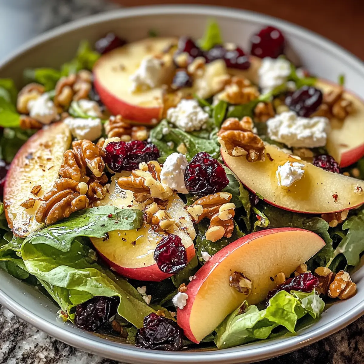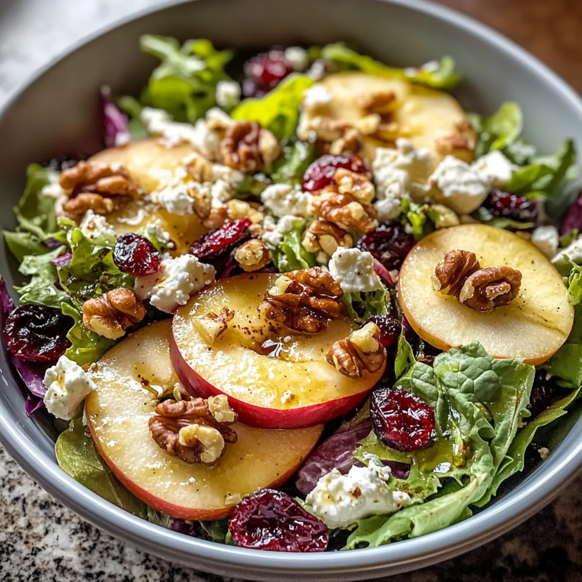 Frische, knackige Zutaten: Die Kombination von Honeycrisp-Äpfeln, cremigem Feta und gerösteten Walnüssen sorgt für einen aufregenden Geschmack, der die herbstlichen Aromen perfekt einfängt.