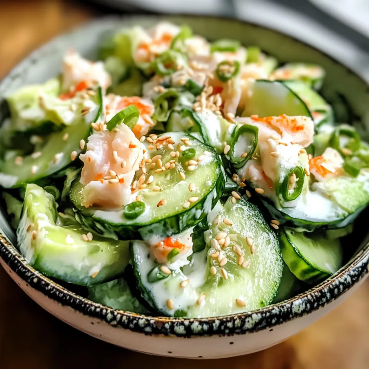 Die Sonne strahlt, und ich kann schon fast den frischen Duft von Summer in der Luft riechen. Warum nicht alle diese geschätzten Aromen in einem einfachen Gericht vereinen? Mein Kalifornische Rolle Gurkensalat ist der perfekte Begleiter für warme Tage. In nur 10 Minuten zubereitet, bringt er die knackige Frische von Gurken, die Süße von Krabben und die cremige Textur von Avocado auf den Tisch – ganz ohne Kochen! Dieses Rezept ist nicht nur super schnell, sondern auch glutenfrei und eine gesunde Option für alle, die der Fastfood-Falle entkommen wollen. Egal, ob für ein unkompliziertes Mittagessen oder als elegantes Highlight auf deiner nächsten Sommerfeier, dieser Salat wird deine Gäste begeistern. Welches Gericht würdest du als erstes dazu servieren?