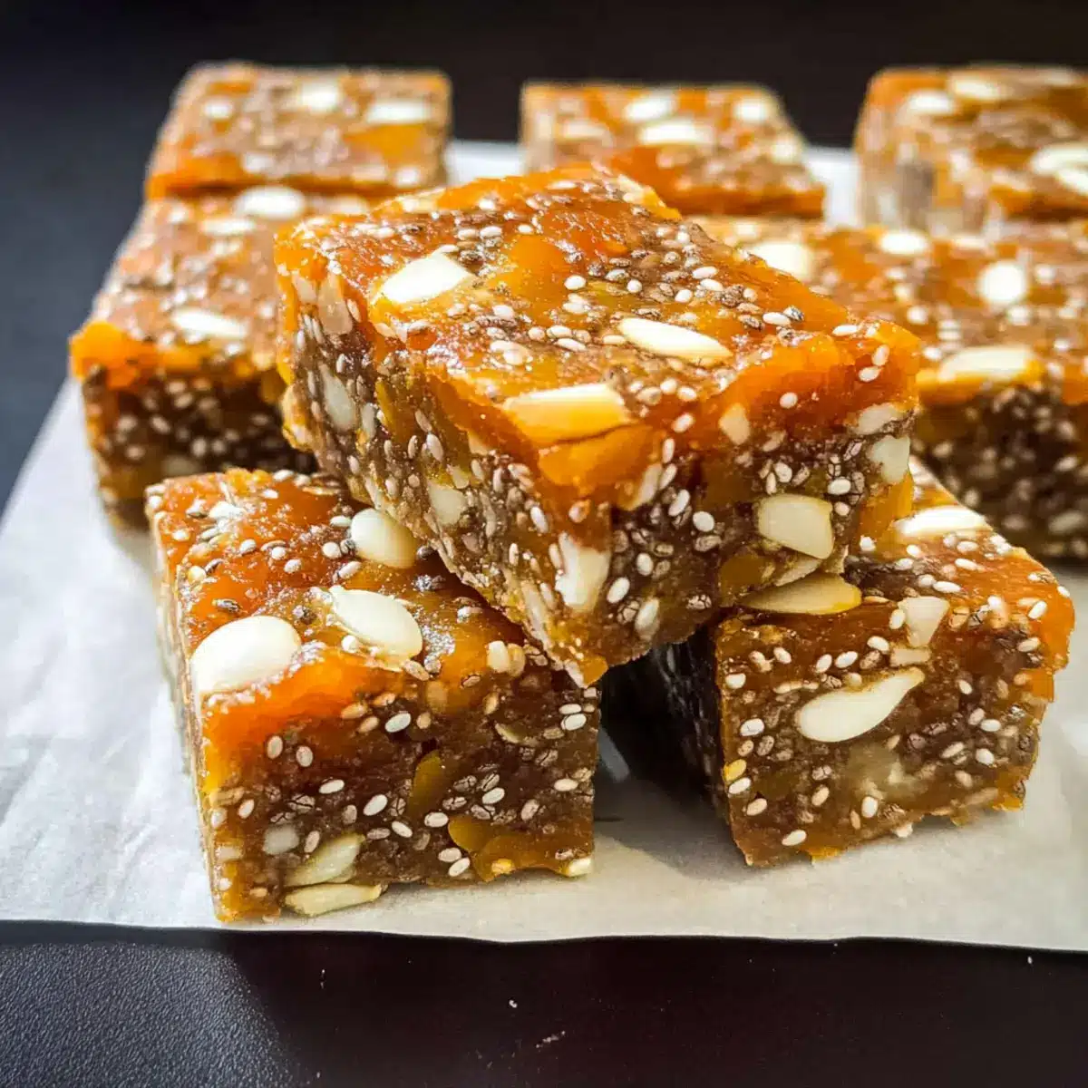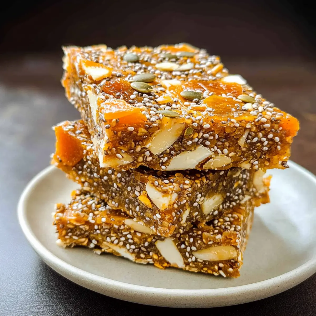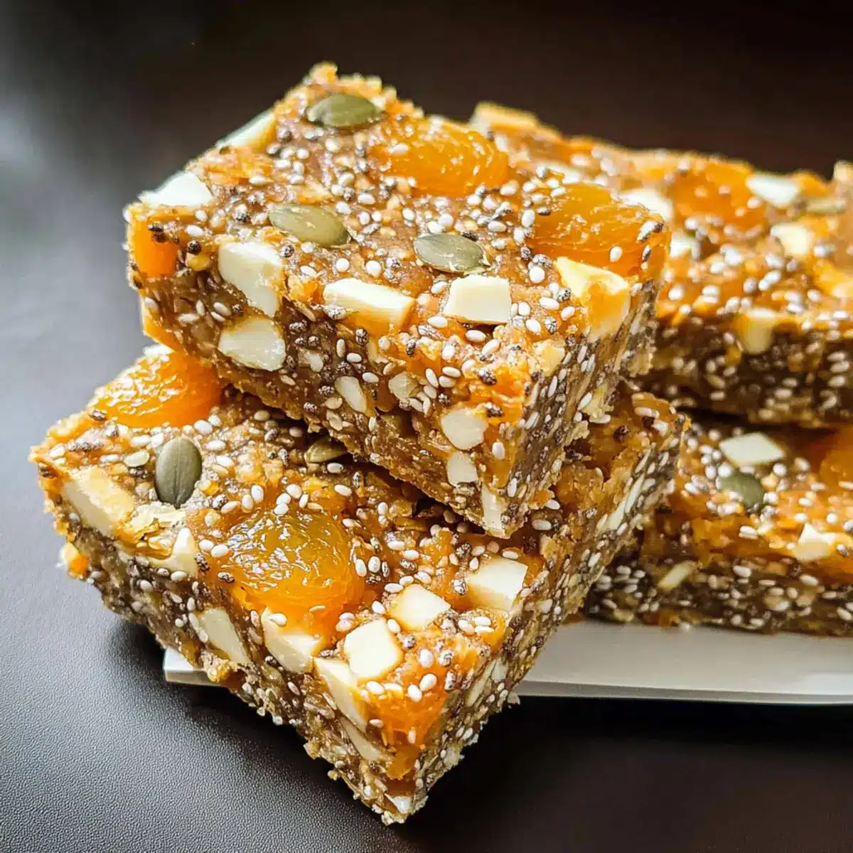 Deine Keine-Bake-Aprikosen-Chia-Energie-Riegel verwandeln sich so in ein leckeres Snack-Arrangement, das sowohl den süßen als auch den herzhaften Hunger stillt!