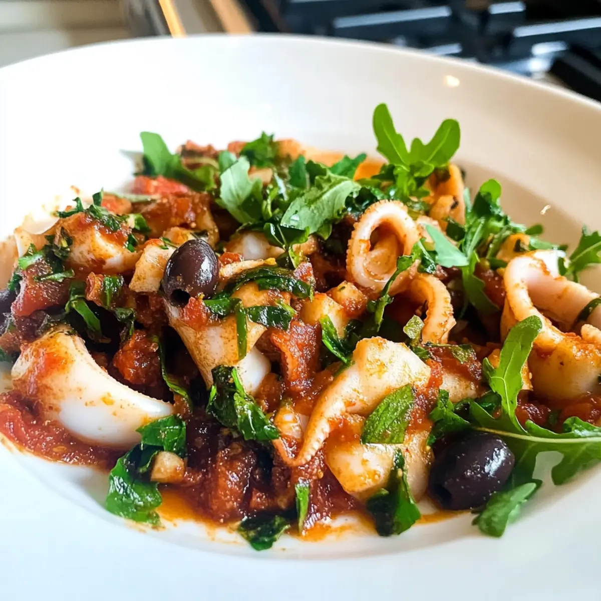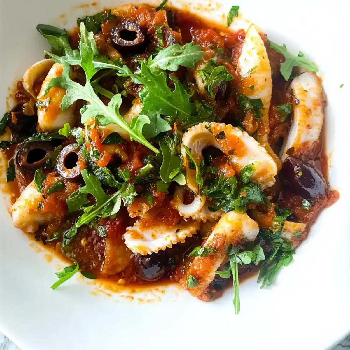 Einfachheit: Das Rezept erfordert nur wenige Zutaten und ist in kürzester Zeit zubereitet. Vielseitigkeit: Du kannst die Sepia auch durch Calamari, Garnelen oder Hähnchen ersetzen, sodass du immer neue Geschmäcker entdecken kannst. Wirkungsvoller Geschmack: Der kräftige Knoblauch und die süßen Tomaten sorgen für ein Geschmackserlebnis, das deine Geschmacksknospen erfreut. Gesundheit: Ideal für eine kohlenhydratarme Ernährung, ohne dabei auf Genuss zu verzichten. Perfekte Kombination: Die zarte Textur der Sepia harmoniert hervorragend mit der Würze der Oliven und dem frischen Arugula. Als Ergänzung empfehle ich auch unsere Honig Butter Nudel für eine weitere geschmackvolle Option!