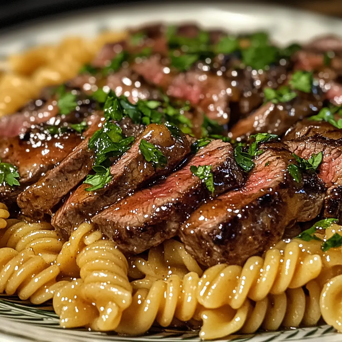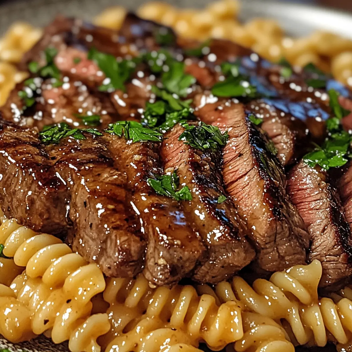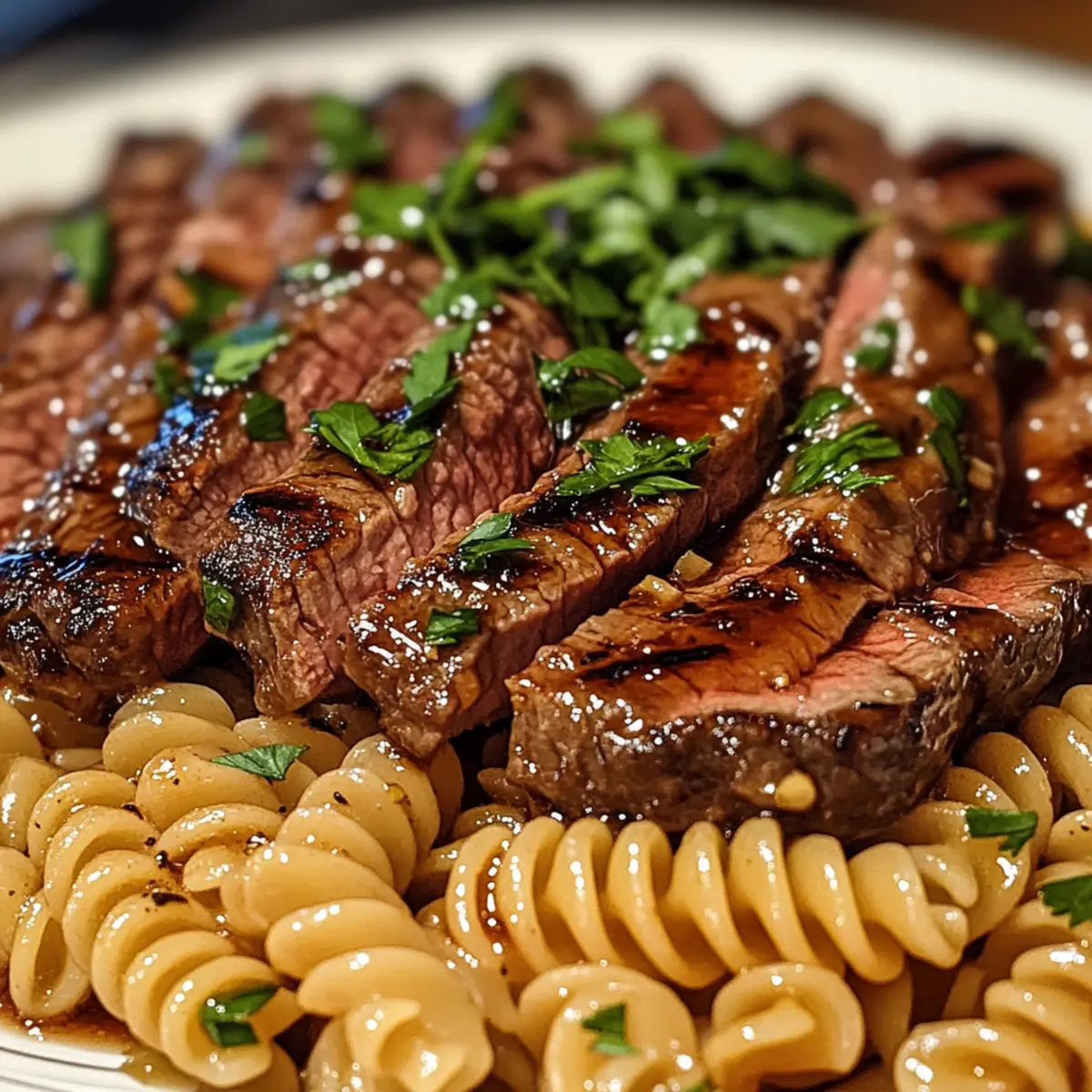 Klebriger Honig Knoblauch Steak mit Rotini genießen