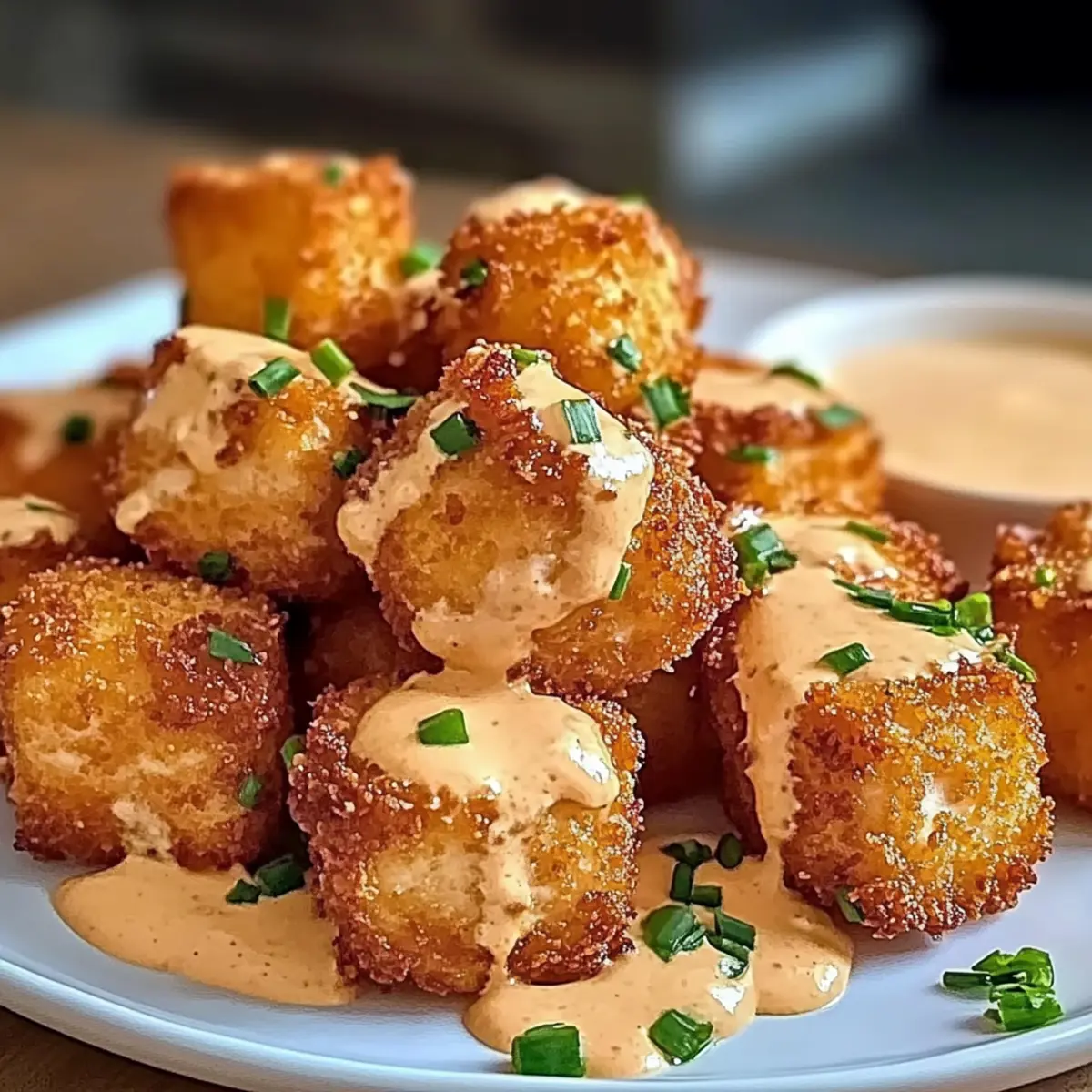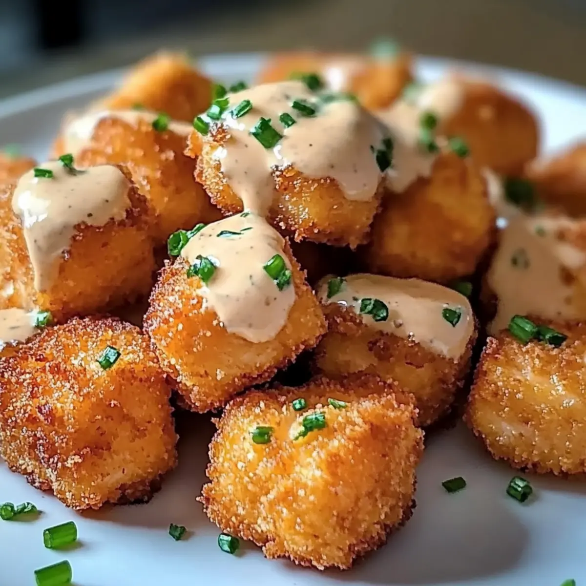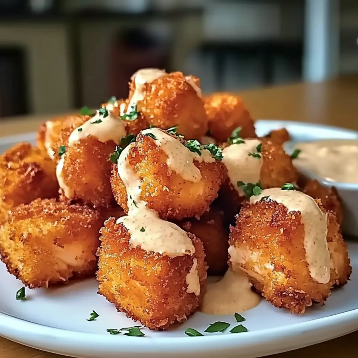 - Servieren Sie die knusprigen Bissen mit der Sauce.