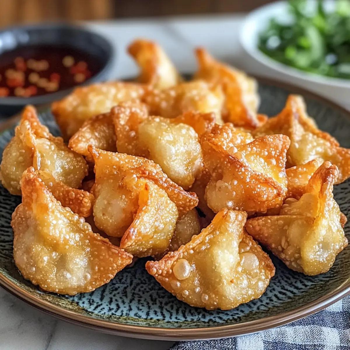 Wontons aufbewahren: Ungekochte Teigtaschen können im Kühlschrank aufbewahrt werden. Frittieren Sie sie frisch vor dem Servieren für maximale Knusprigkeit.