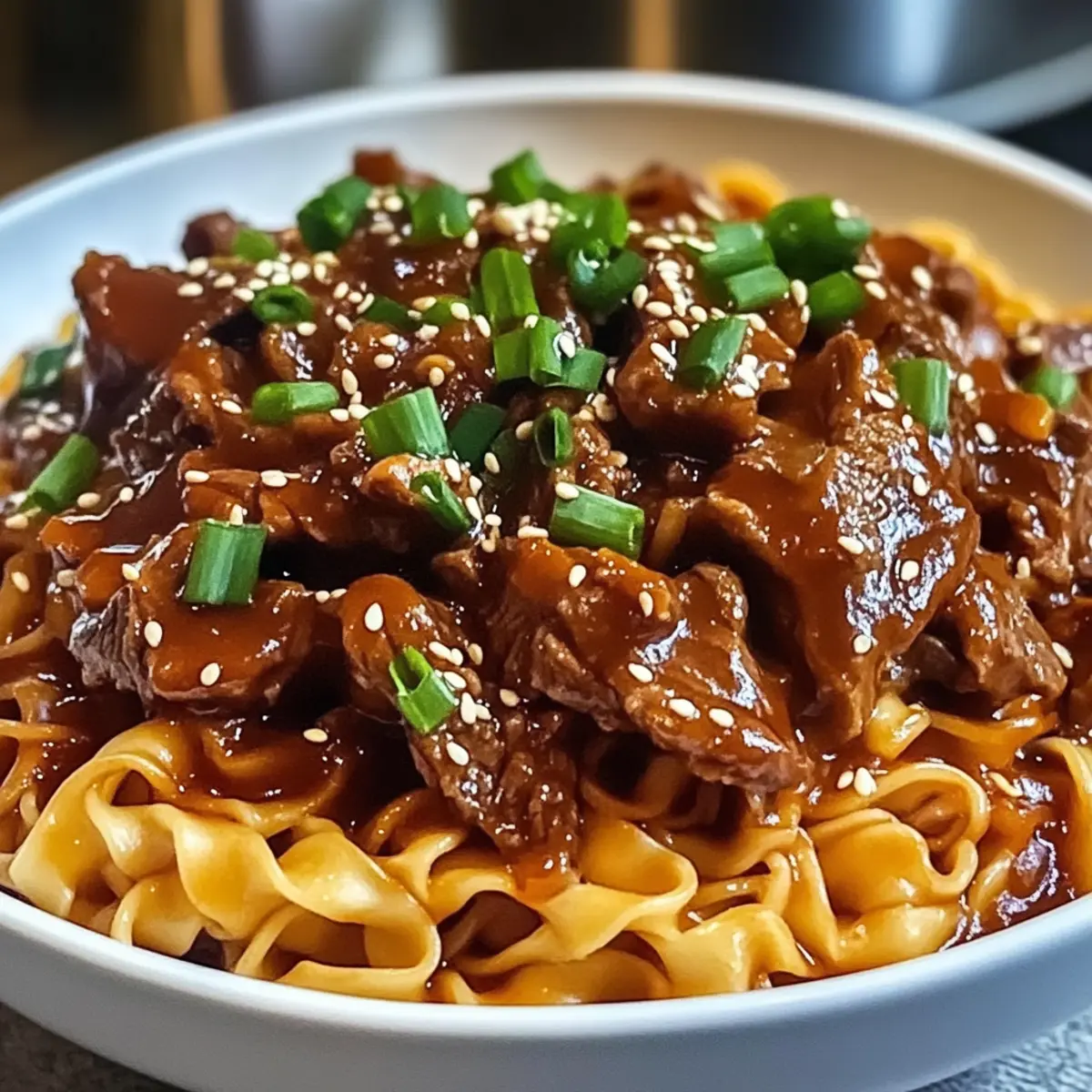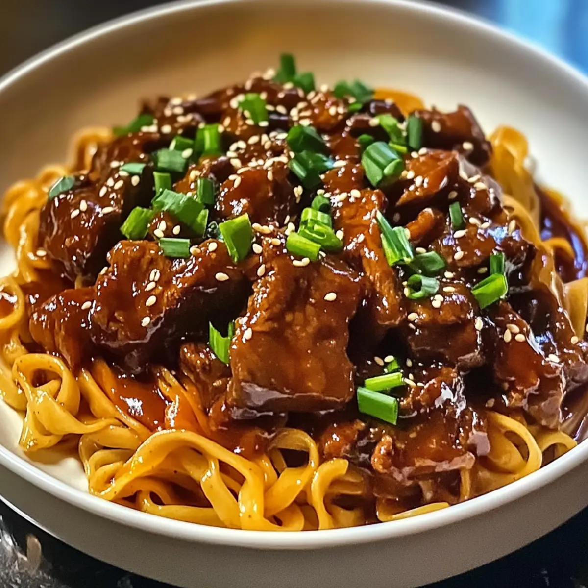 Reiche Aromen: Die Kombination von Sojasauce, Gochujang und frischem Ingwer verleiht diesen Rindnudeln einen intensiven Geschmack, den du lieben wirst.